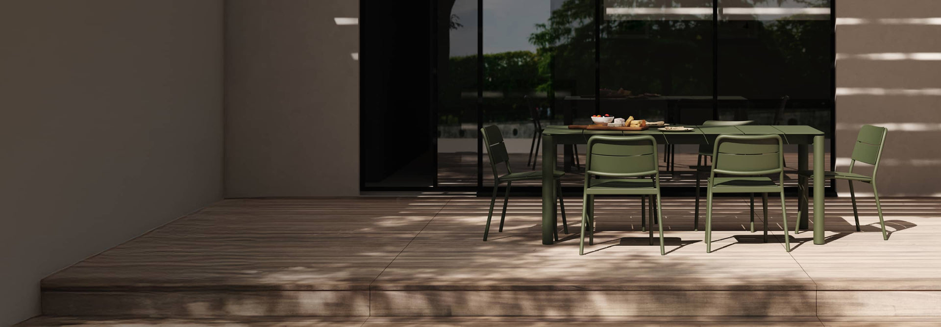Clean lines, matte finishes, and subtle slatted detailing. Bandwidth is everyday outdoor furniture designed to do more with less—durable, stackable, and always in balance.