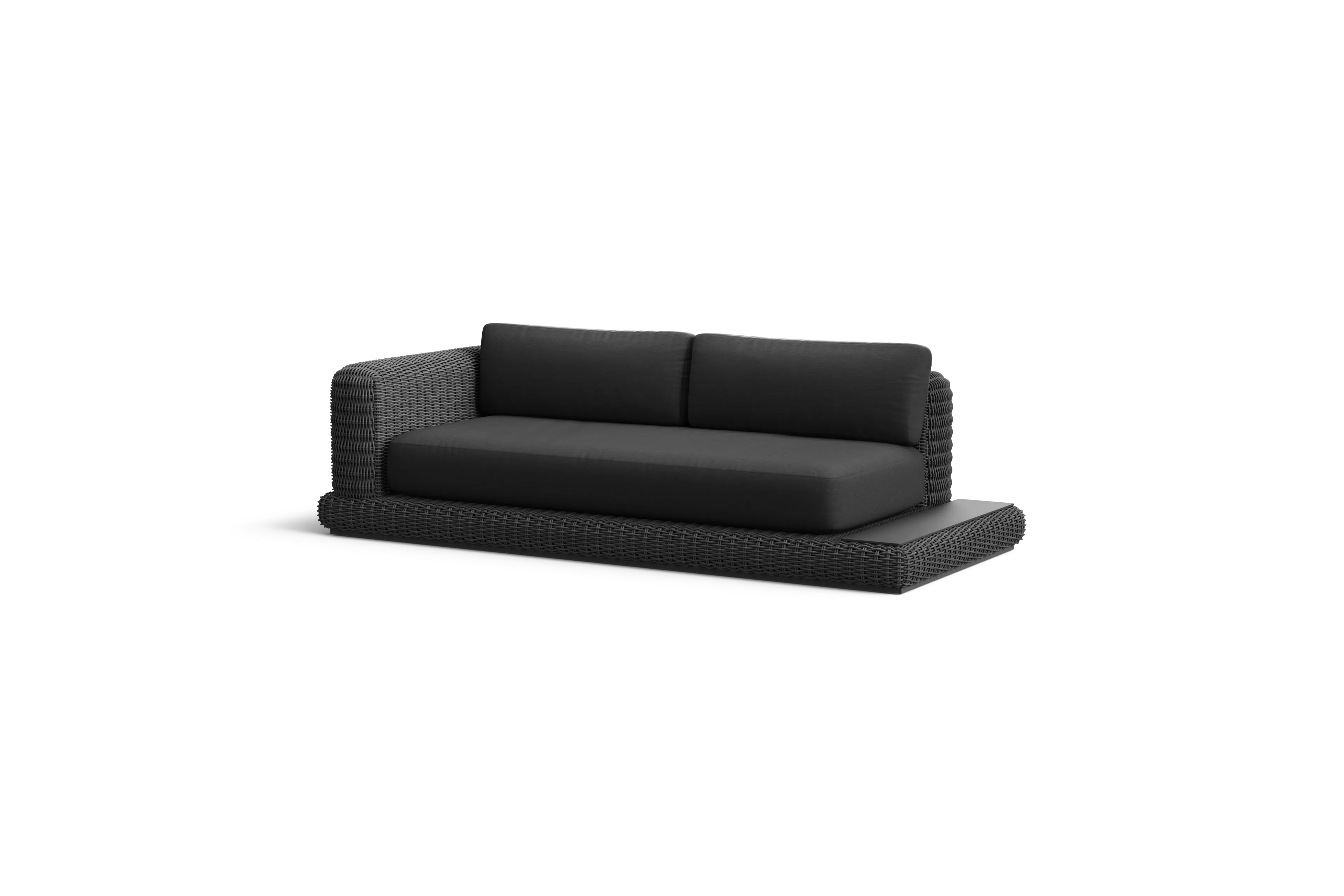 It’s a whole new wicker. The Roundabout Sofa with Side Table weaves sink-in plushness with extra deep, wide seats and synthetic rattan that never fades.