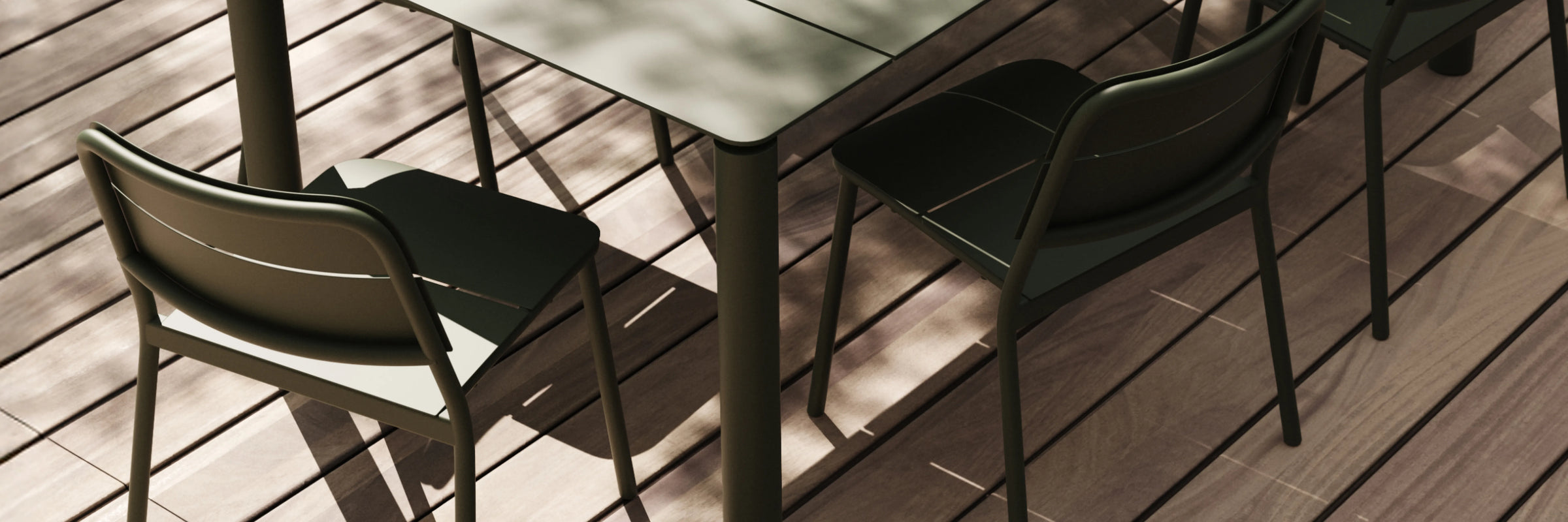 With a clean profile, subtle slatted detailing, and a matte finish, Bandwidth brings an understated yet sturdy style to a range of outdoor spaces—from patios and rooftops to restaurant courtyards—adding function without eating up your bandwidth.