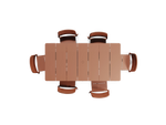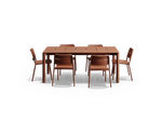 The set includes six dining chairs, comfortably seating six, but the table has room to fit up to eight. Additional Bandwidth Dining Chairs are available separately for those who want to add more seating.