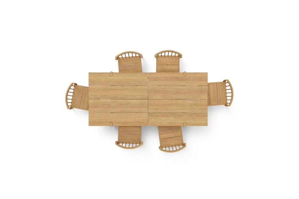 It’s subtle but not unnoticed. From gentle curves to the leg joinery, every detail in this outdoor dining set is thoughtfully designed.