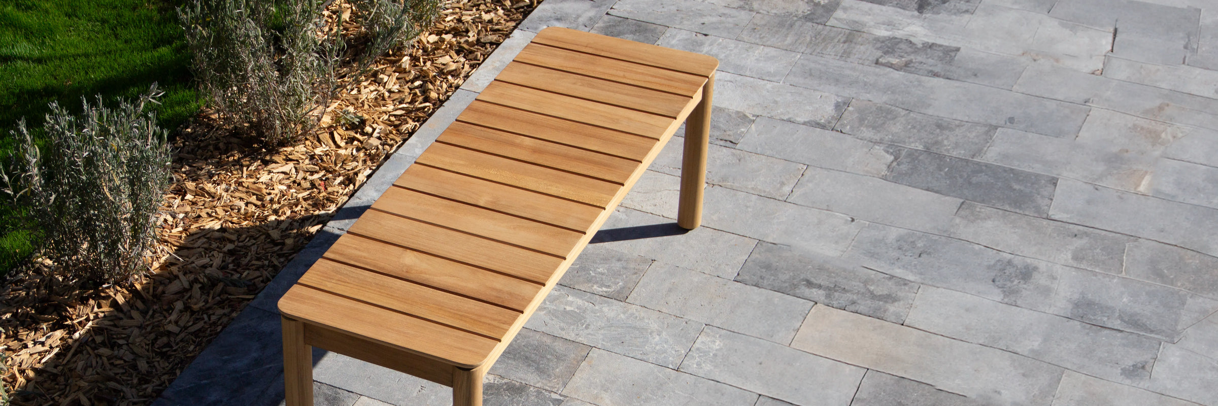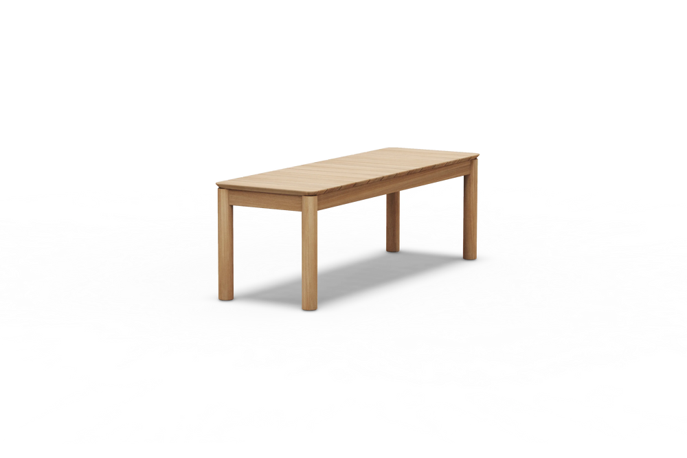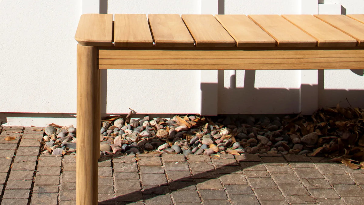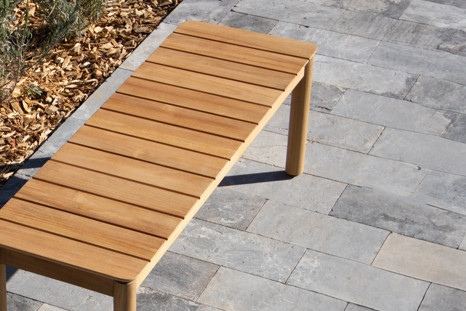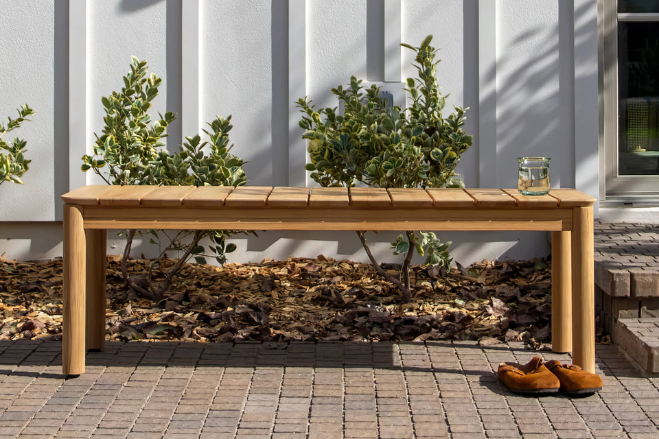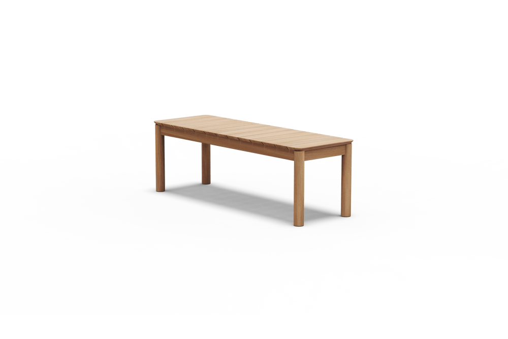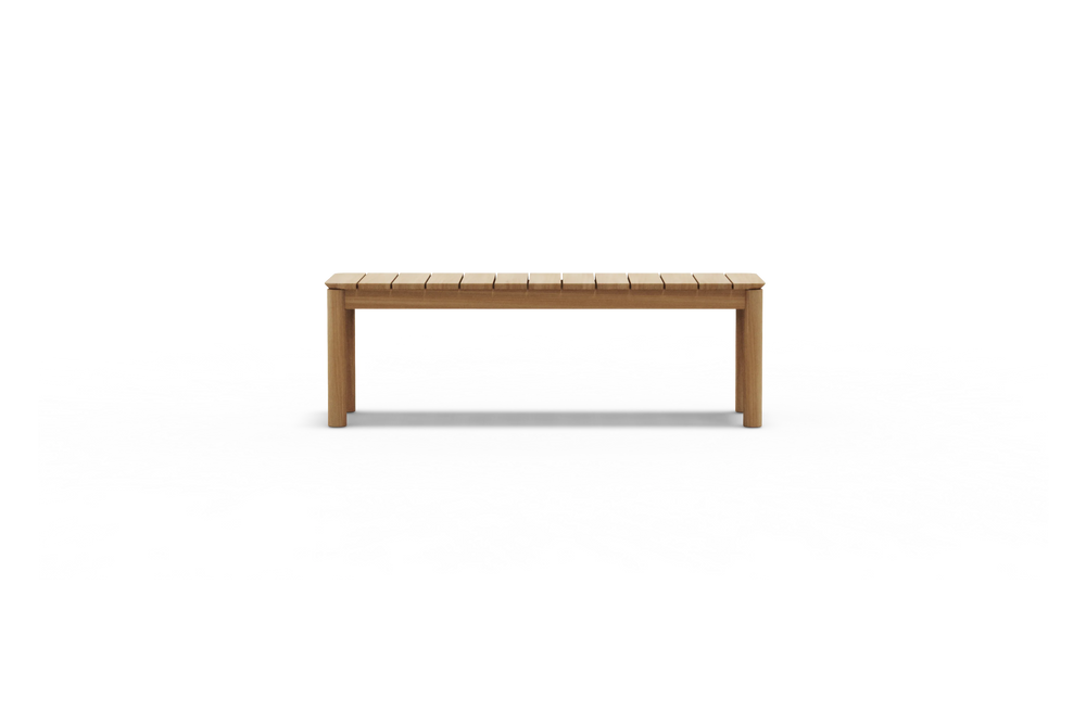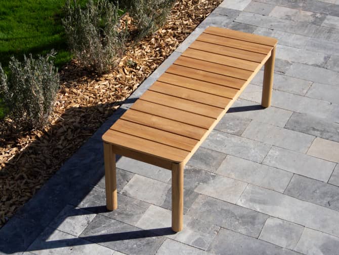 Goes here, goes there. With a timeless design and casual appeal, this solid teak wood outdoor bench creates space for everyone — for a lifetime.