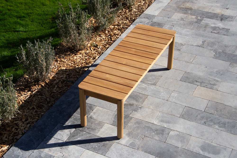 Backless teak outdoor bench