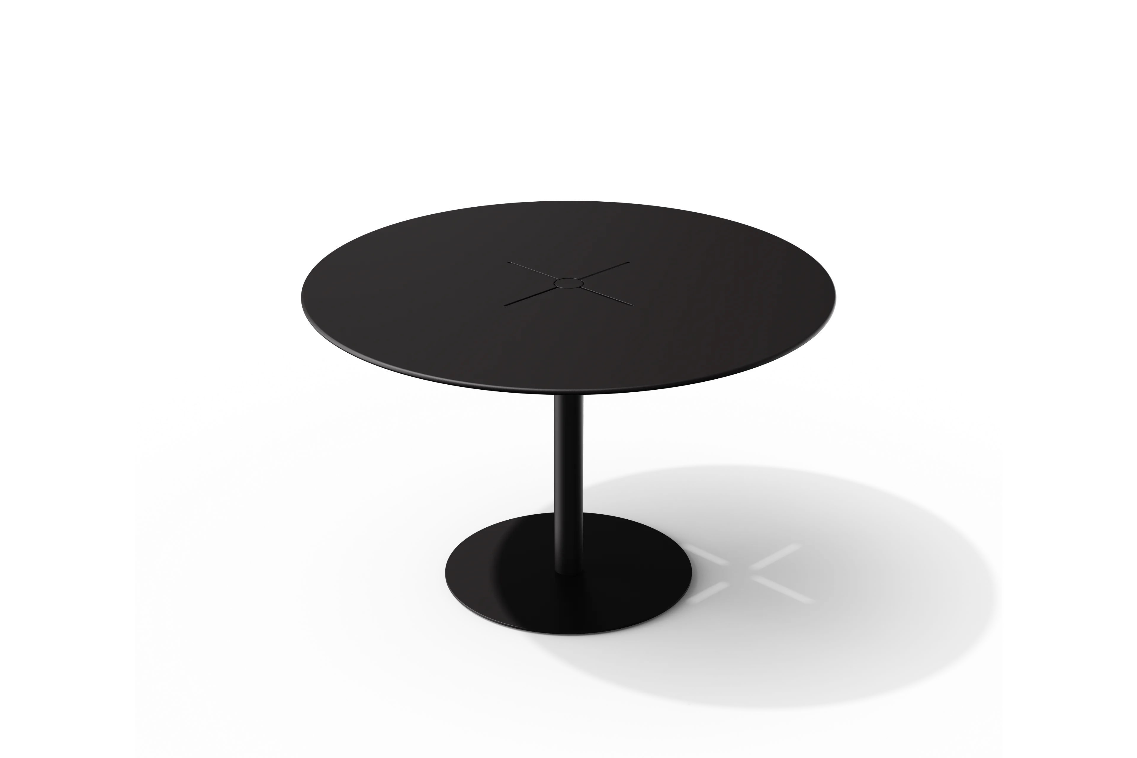 Made for good meals and good company, the XY Dining Table features a powder-coated metal base that’s perfect for all weather and doubles as a hidden umbrella base.