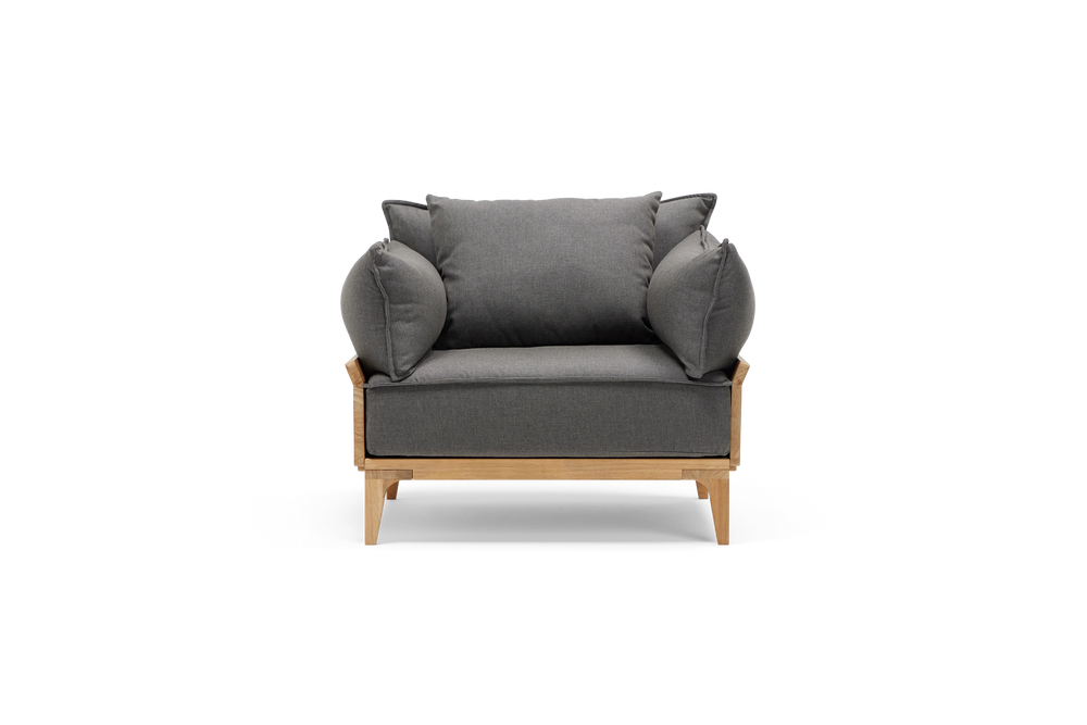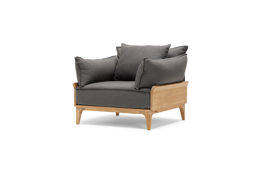 Luxurious comfort without the resort fee. The Bluff outdoor lounge collection features generously plush floating cushions, premium Sunbrella fabric and a timeless solid SVLK-certified teak frame.