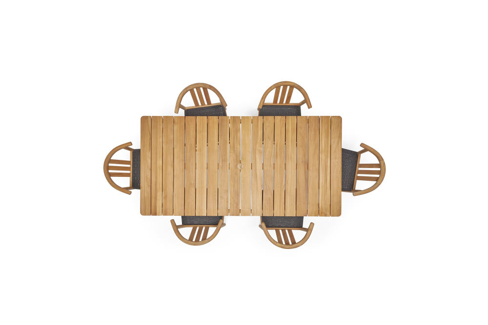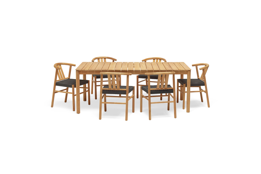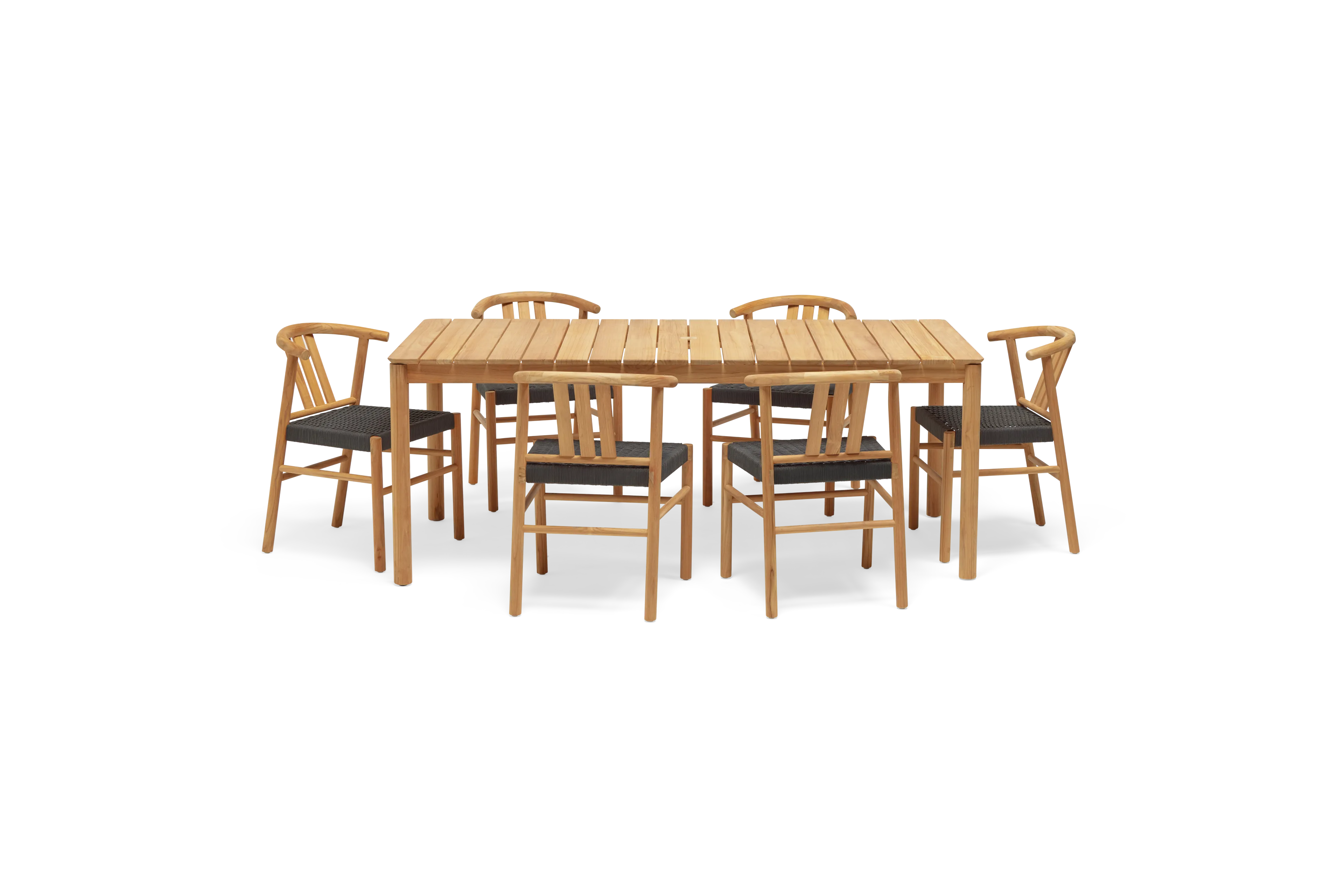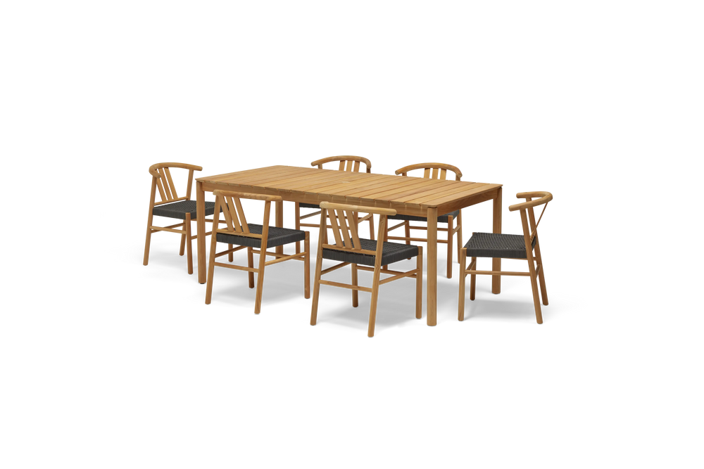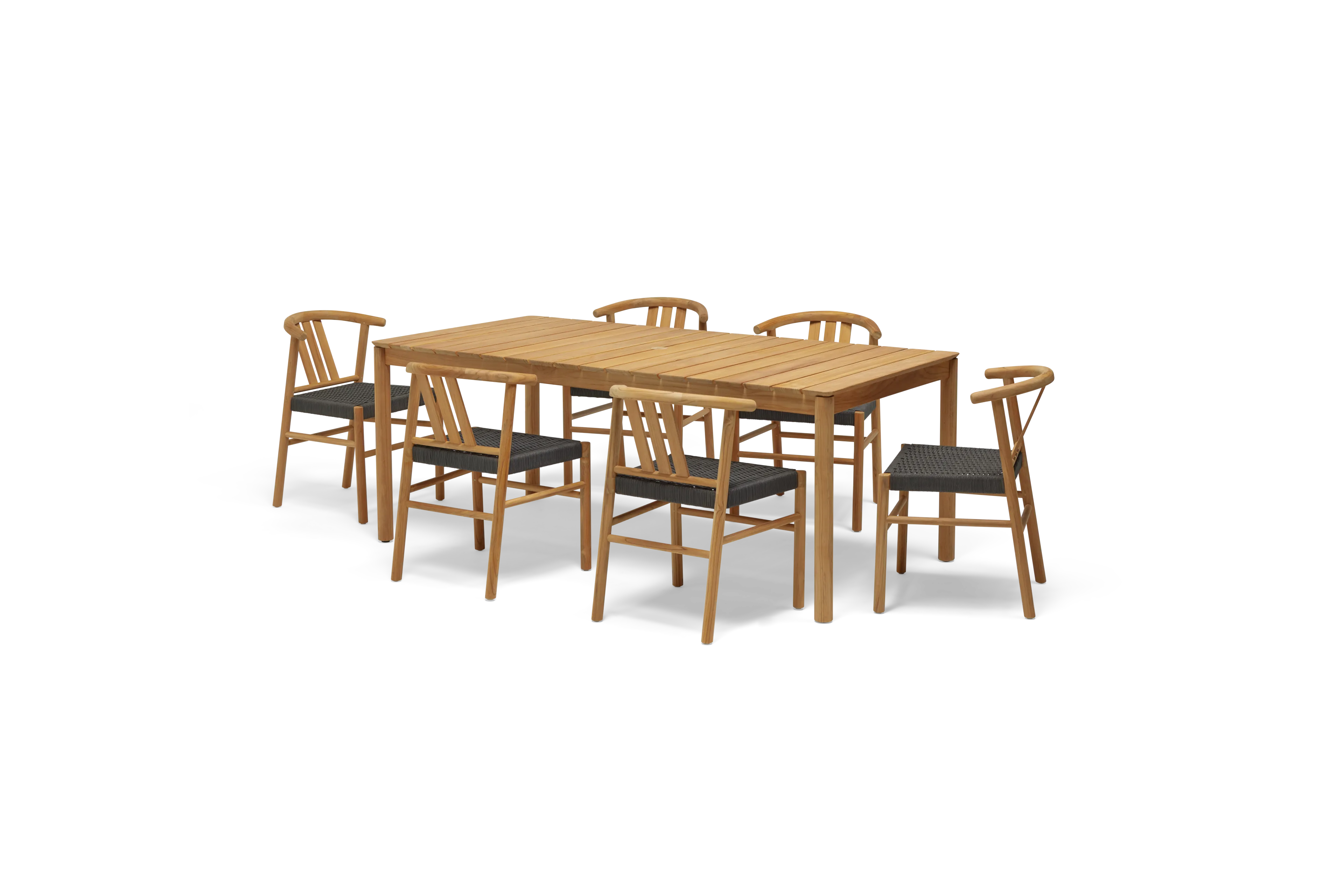 Finally agree on where to go for dinner. The Haven Dining Collection serves FSC-certified teak and subtle Scandinavian inspiration. Visually light and sculptural, built solid. Available in a set with seating for 4, 6, or 8.
