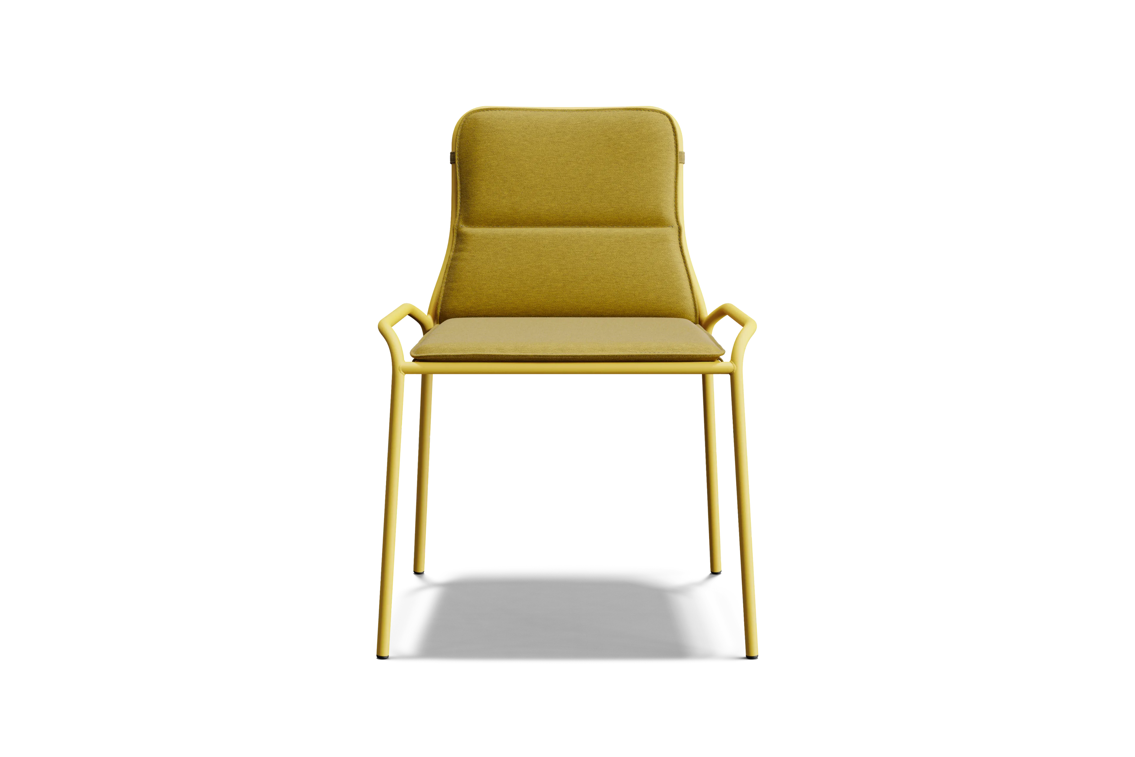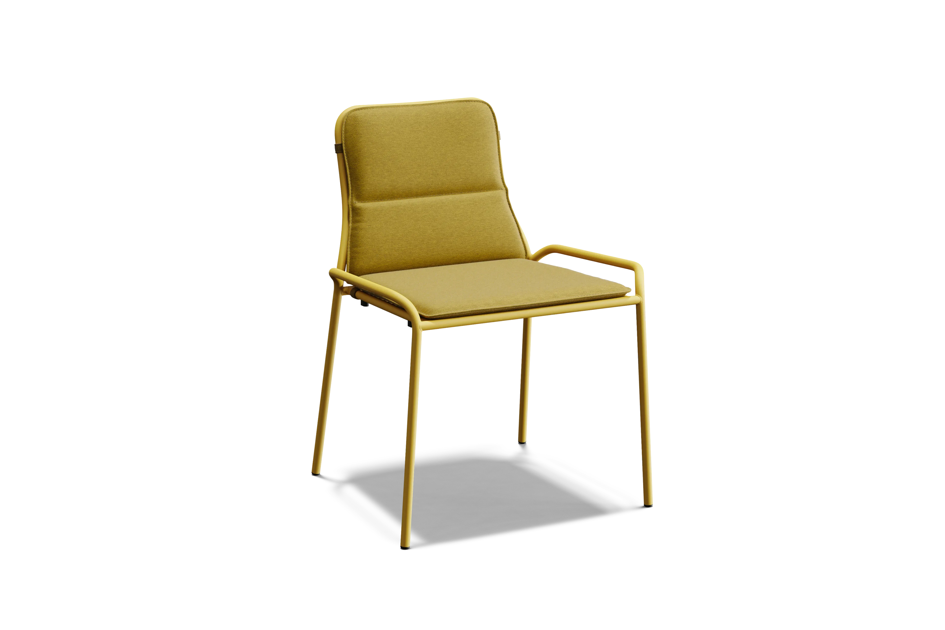 Made for good meals and good company, XY Dining Chair is sturdy and stackable and made of powder-coated steel that’s perfect for all weather.
