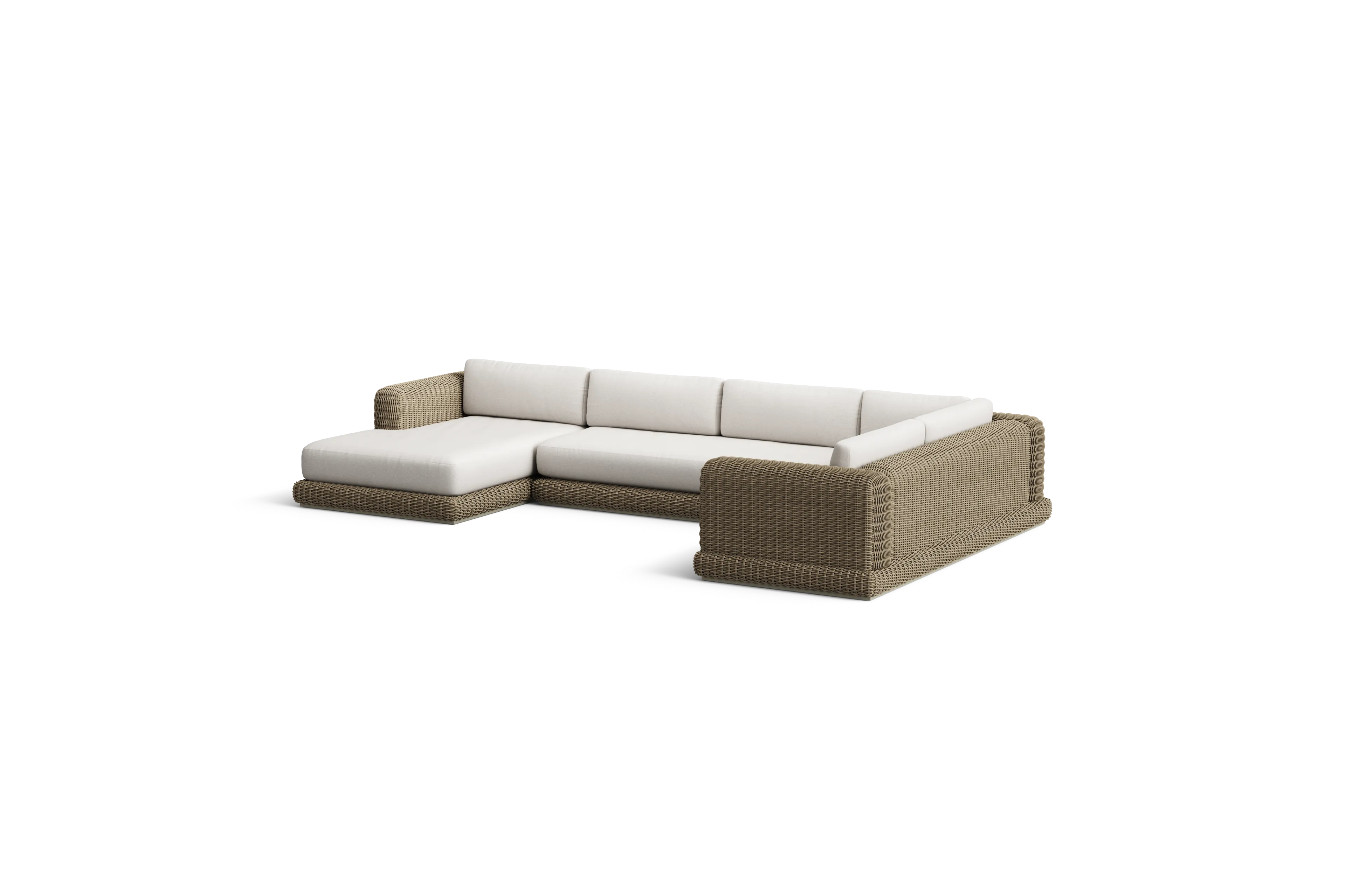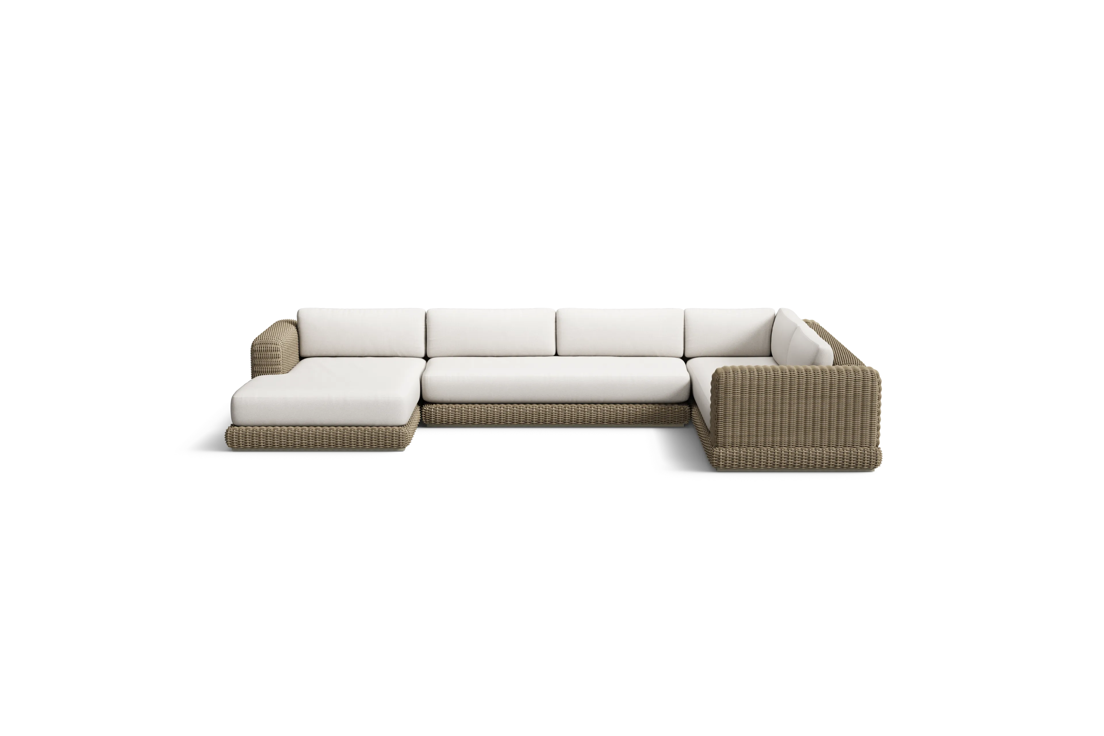 It’s a whole new wicker. The Roundabout Chaise Sectional weaves sink-in plushness with extra deep, wide seats and synthetic rattan that never fades.
