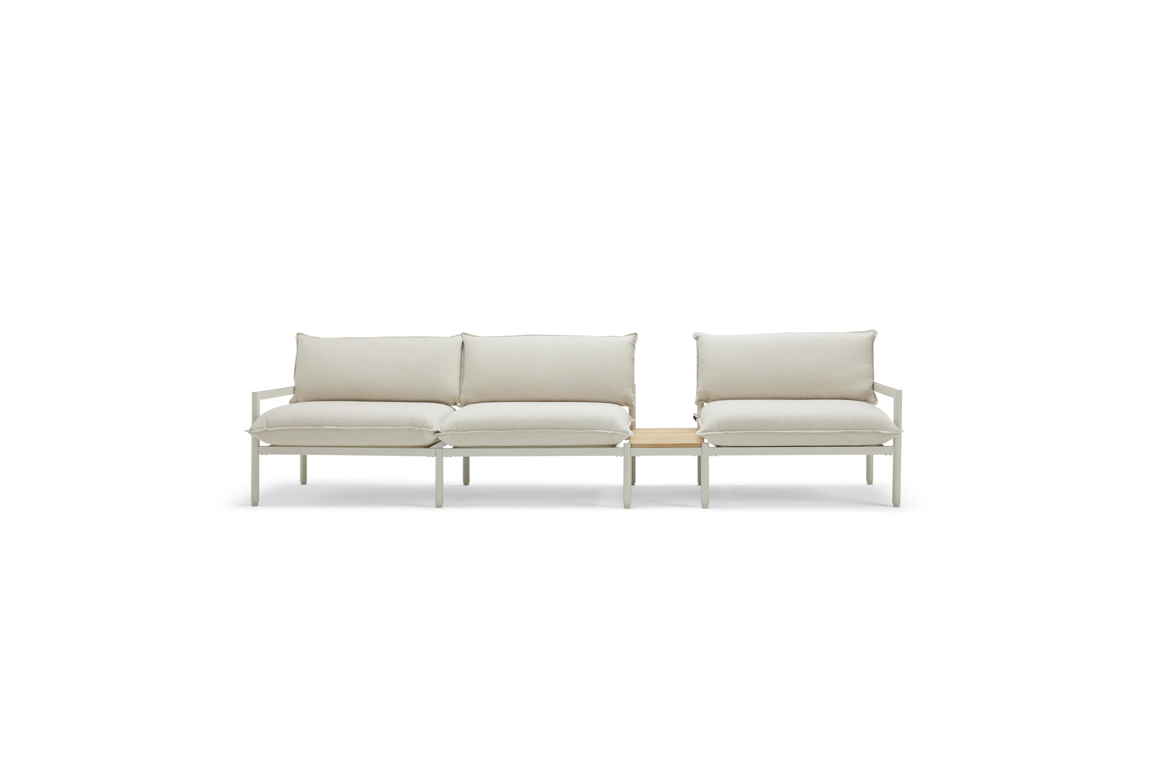 Terra is our most plush outdoor sofa yet. Comfortable and easy-to-clean with recycled Sunbrella fabric and a sleek aluminum frame. Includes a modular in-line table to be placed where you need it most.