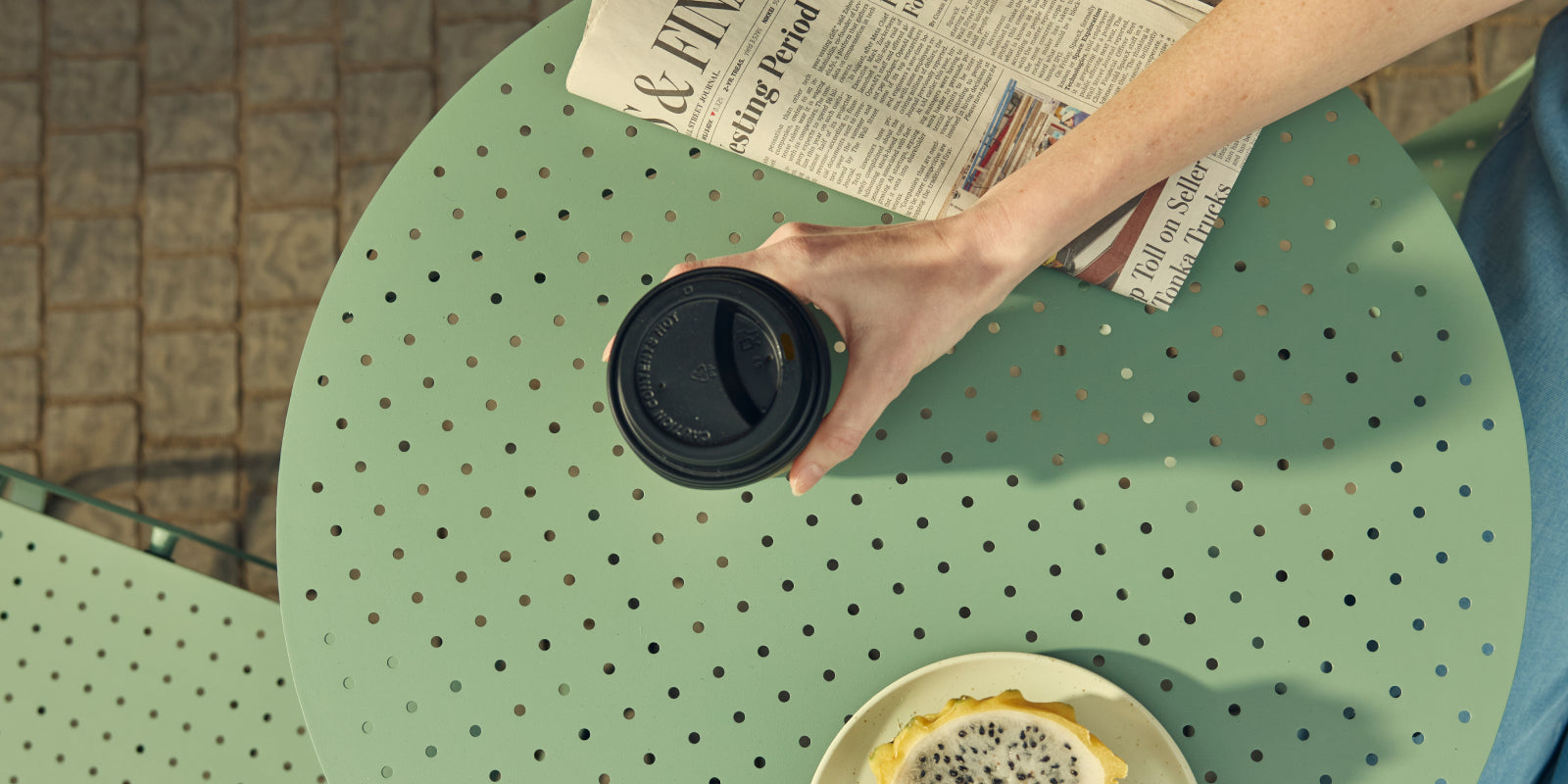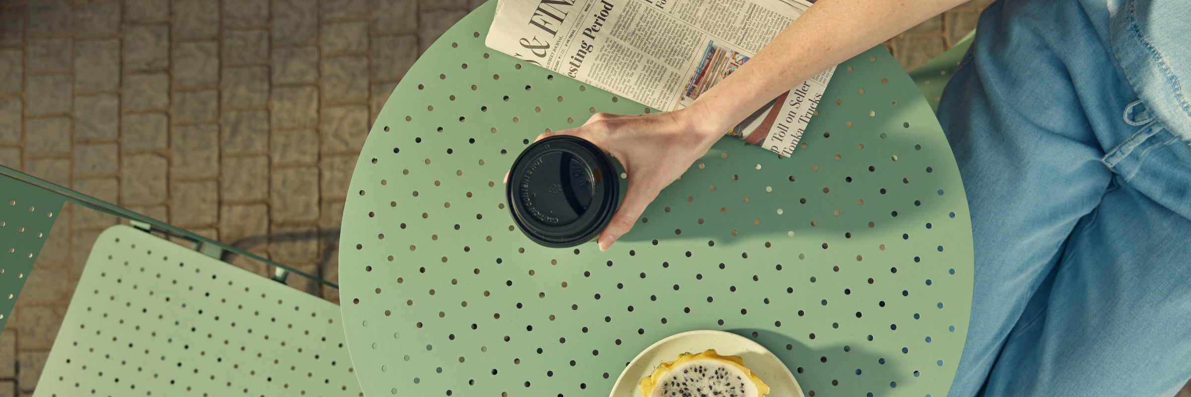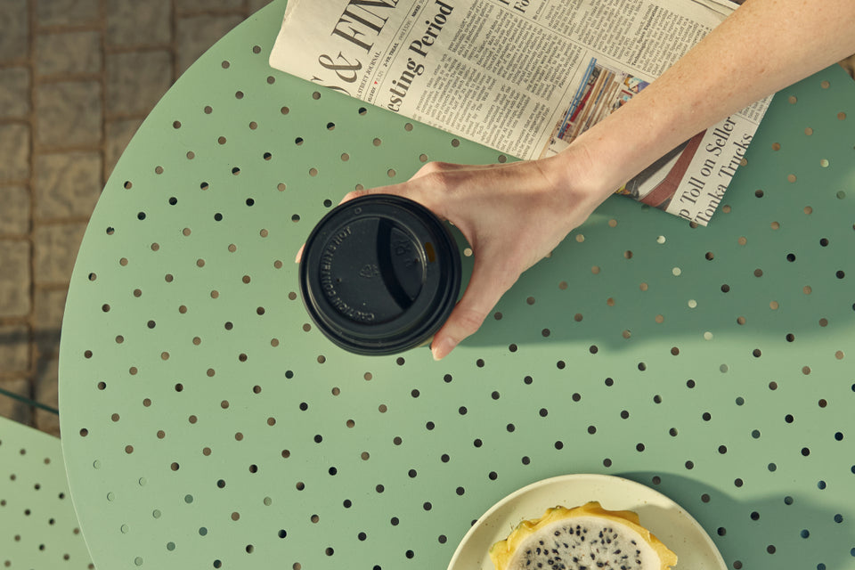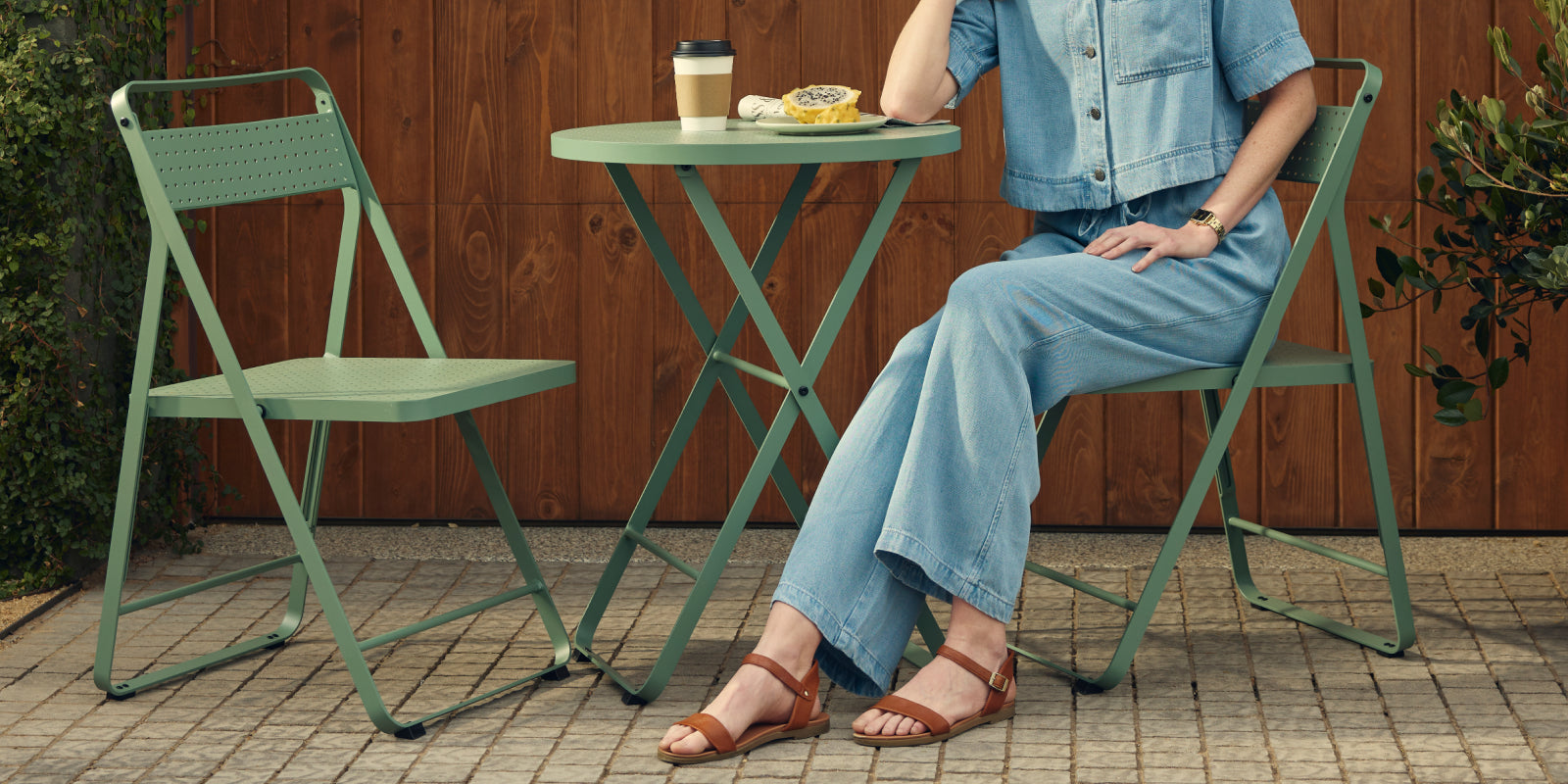 Coffee, lunch, or somewhere to land for a bit. It folds when you need the space, and stays put when you don’t.