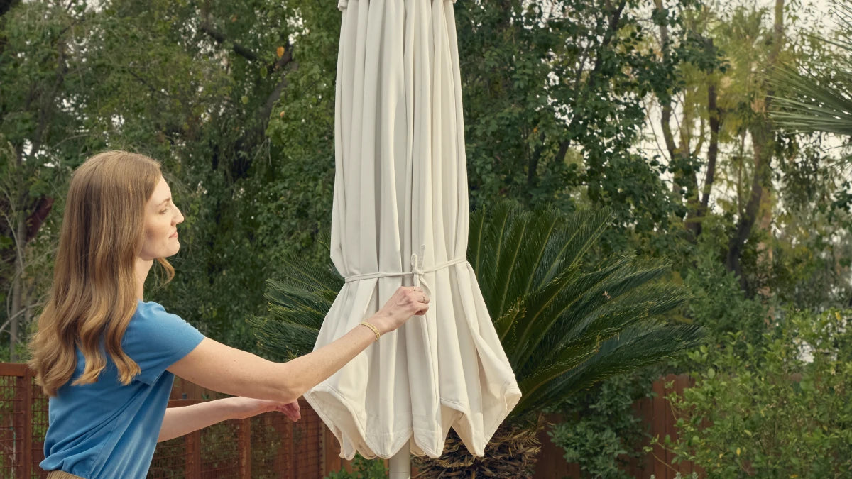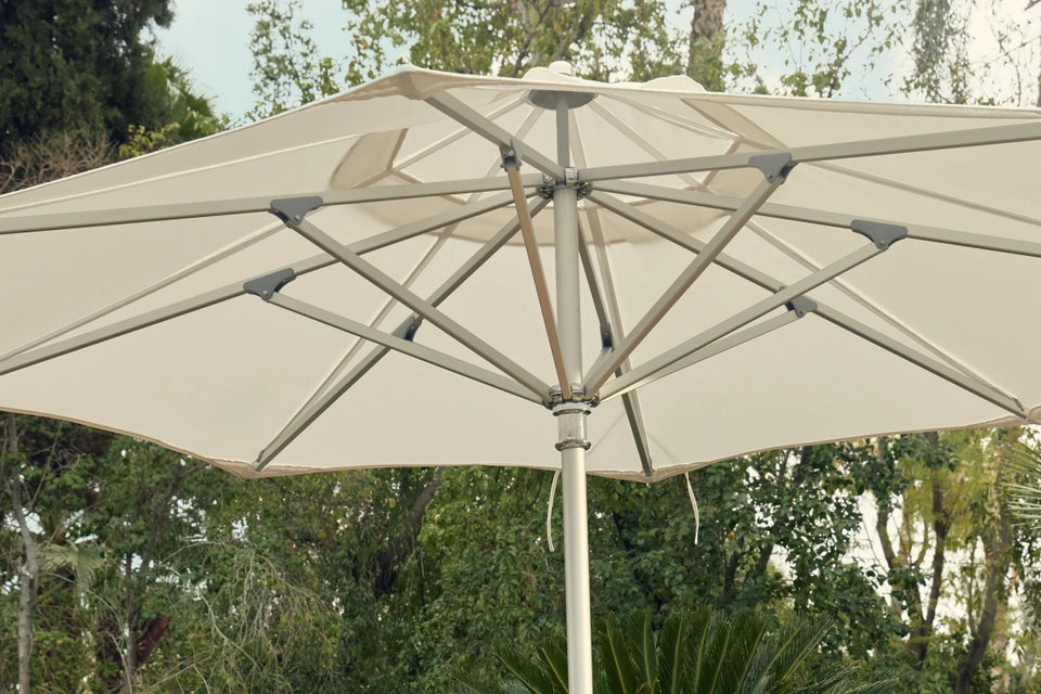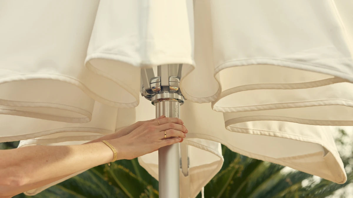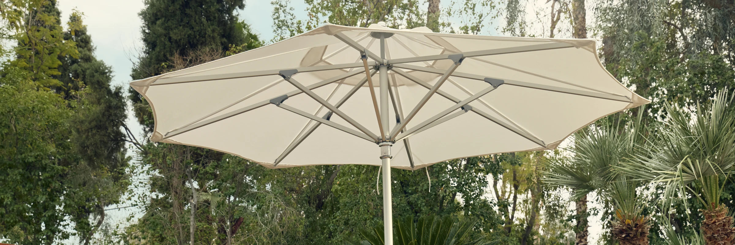 One motion. No crank, no pulley, no rope. The Cast Umbrella opens the way outdoor shade always should have.