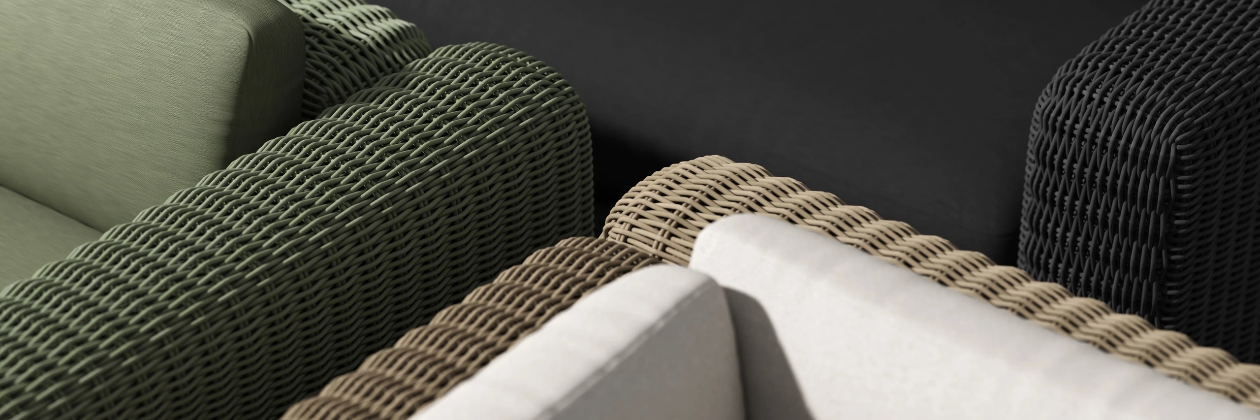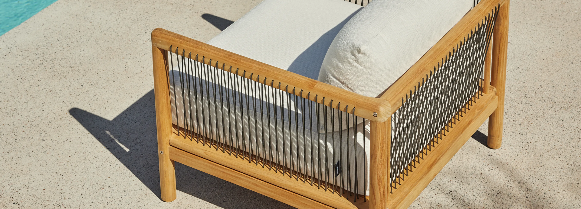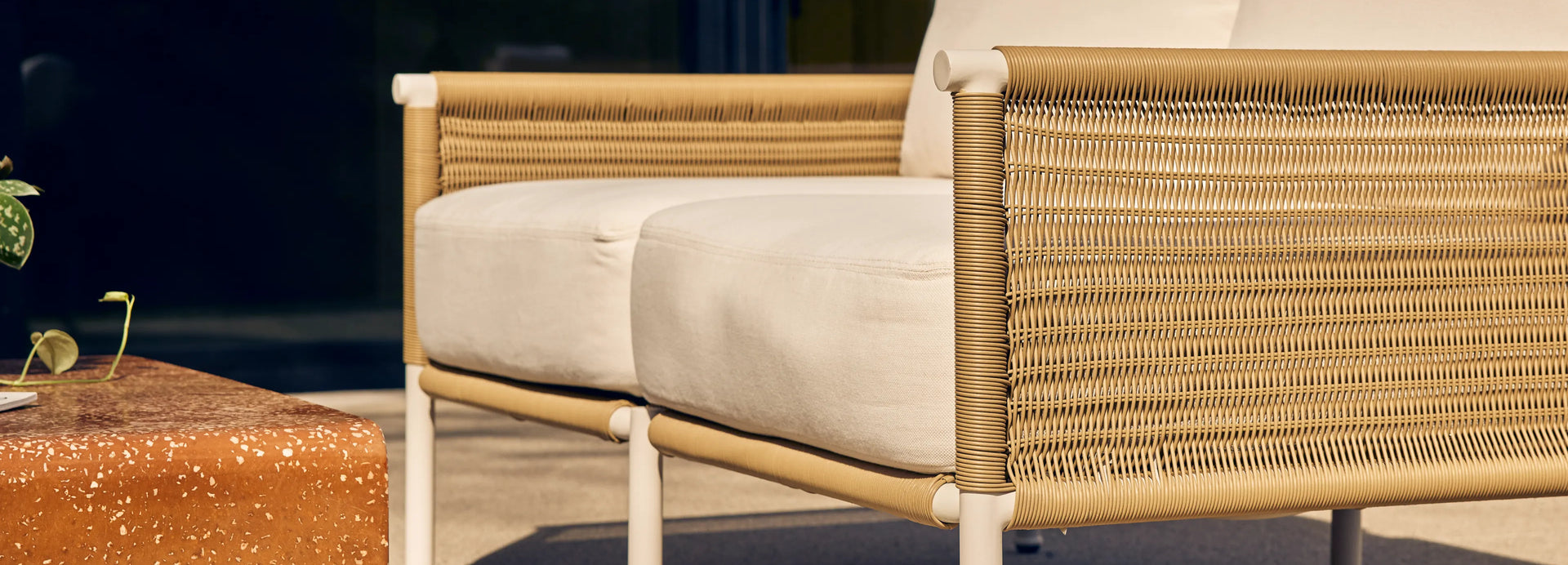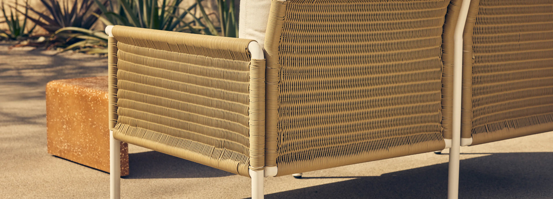Our sofas, chairs, sectionals, and dining chair seats feature weather-proof handwoven rope.