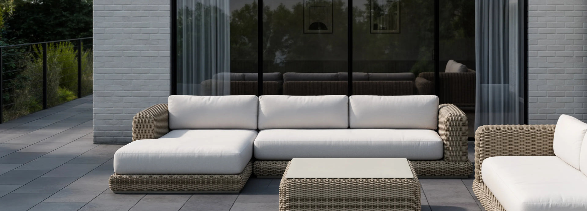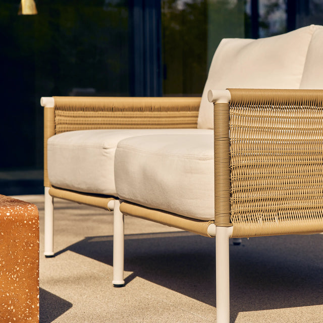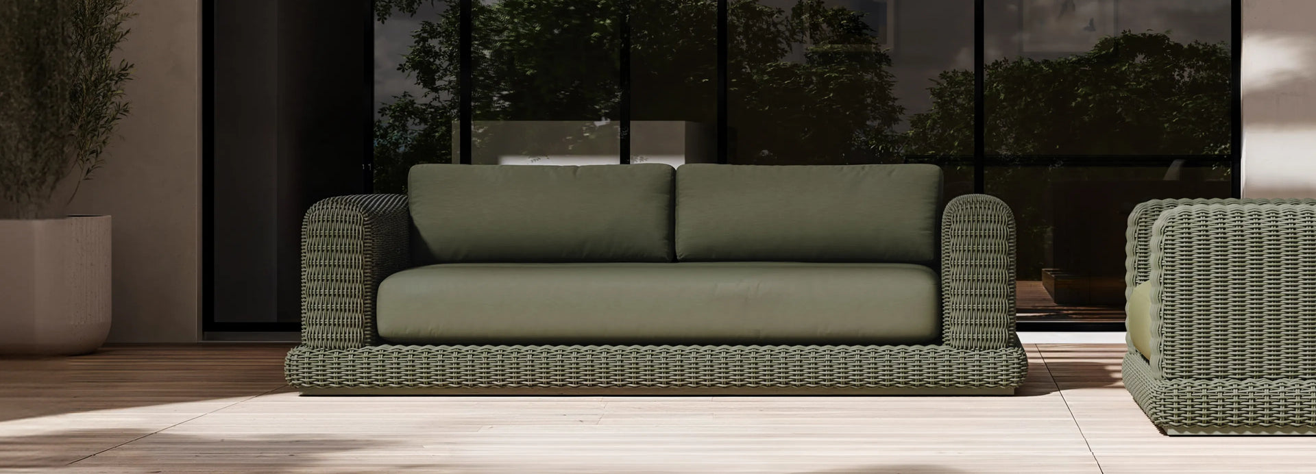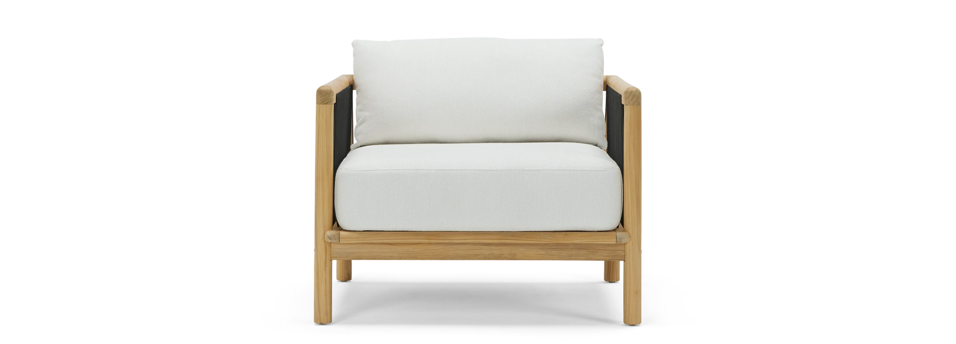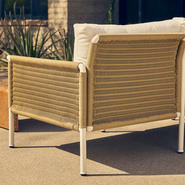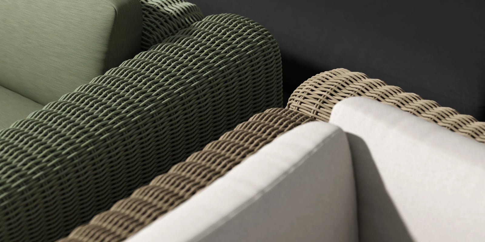 Our sofas, chairs, sectionals, and dining chair seats feature weather-proof handwoven rope.