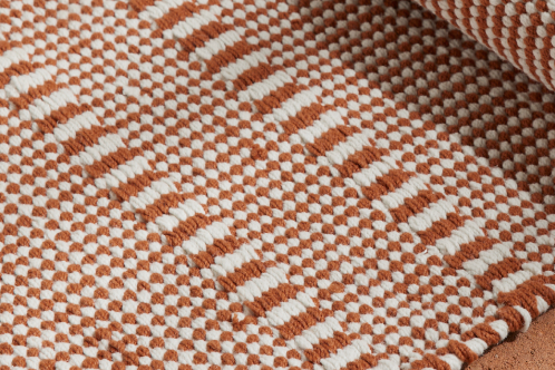 Our handwoven 100% recycled polyester rugs resist stains and cleans easily.