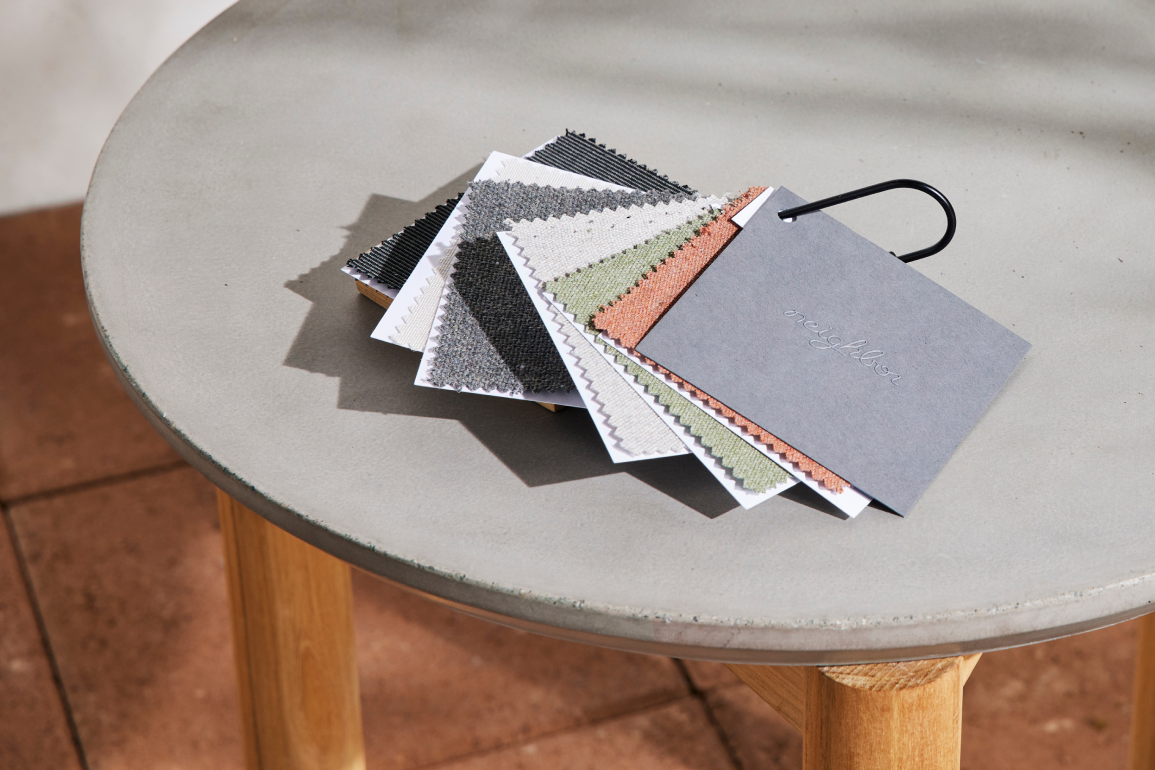 Get a feel for our fabrics at home with a free swatch kit. Tip: they make great coasters.