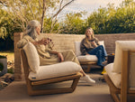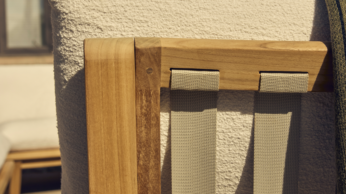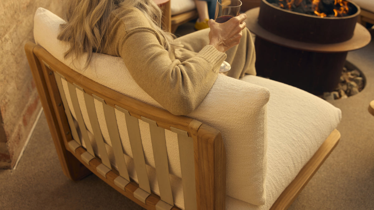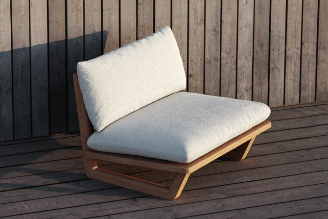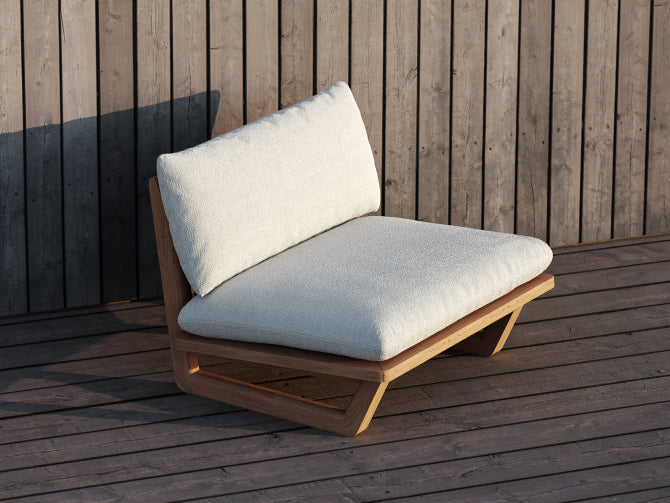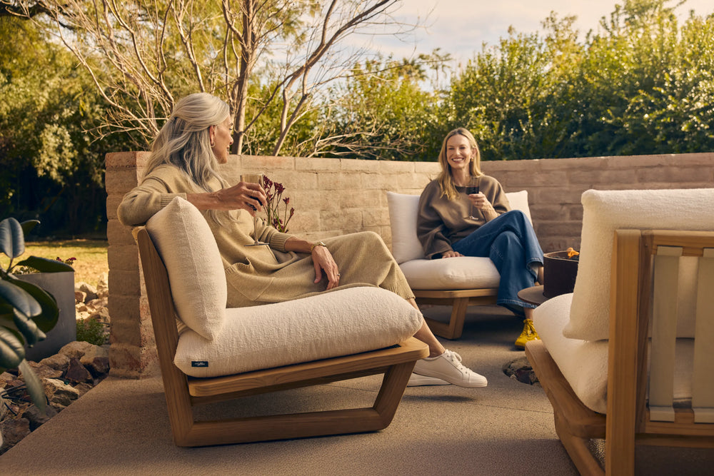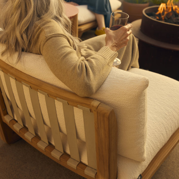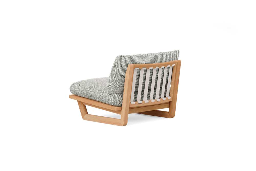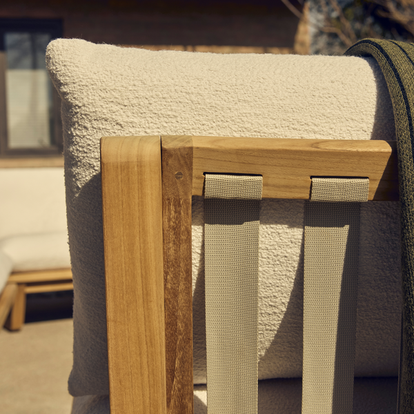 Sit back, sink in. With high-performance Sunbrella® fabric cushions that float above a handcrafted solid teak sled base, add our Dweller Chair to any outdoor living room in front of your favorite view.