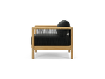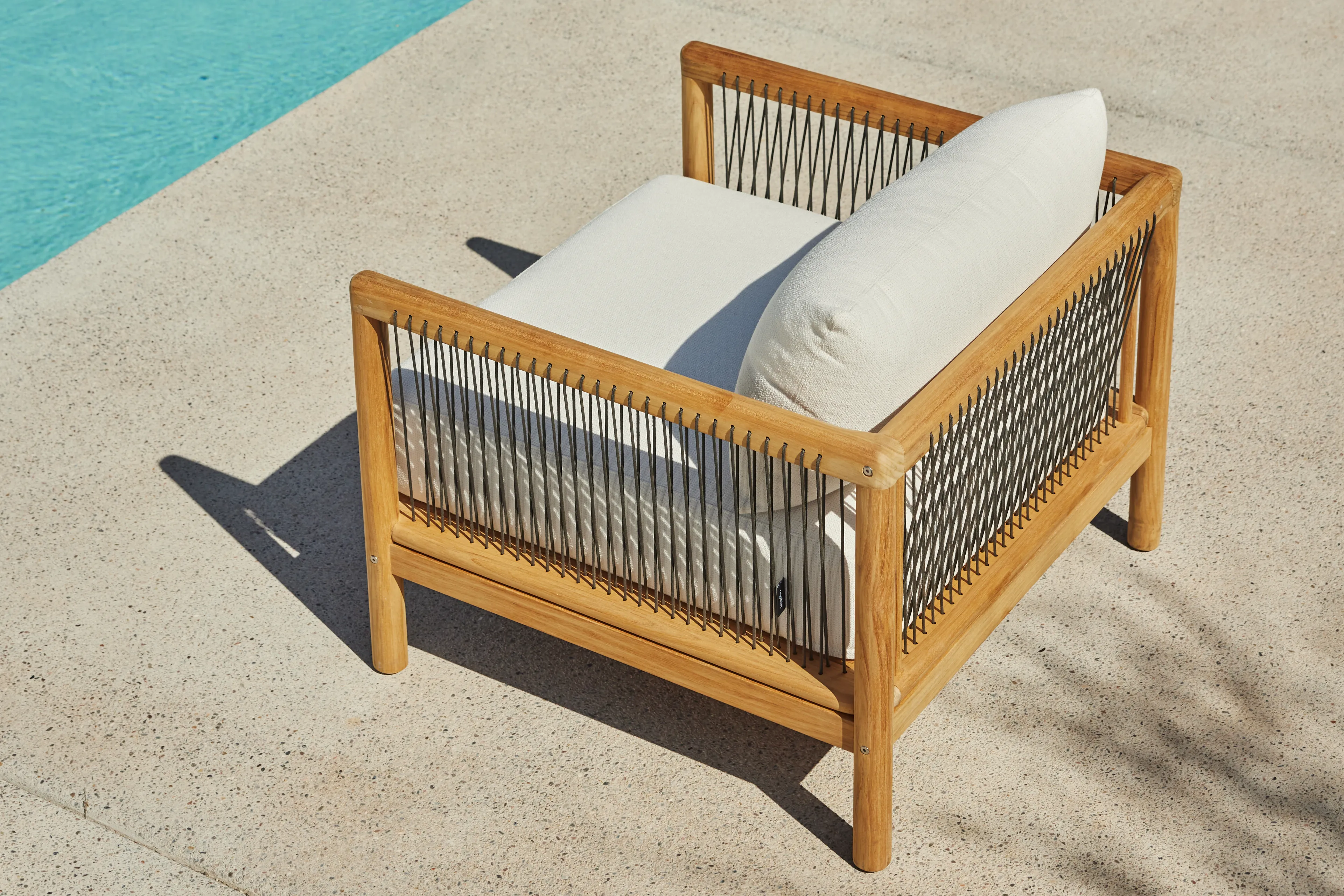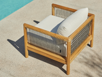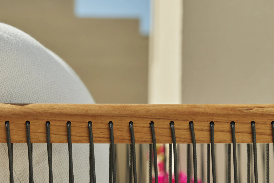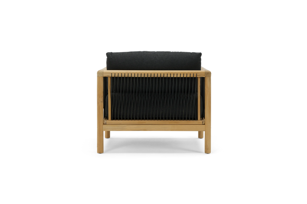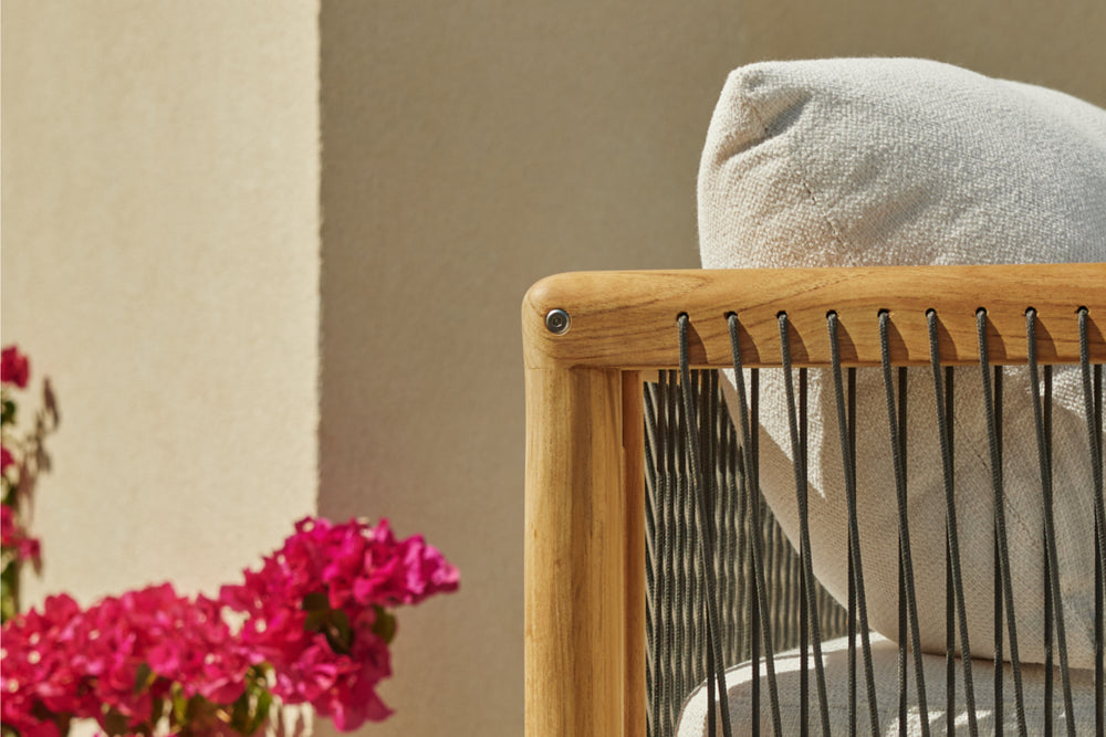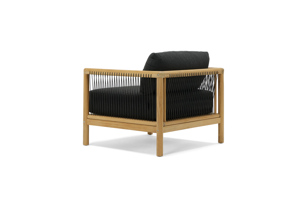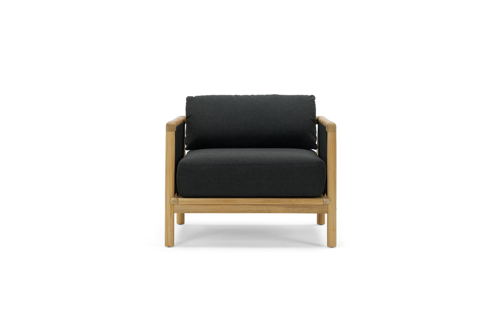 Your living room chair is jealous. The Reel chair explores artisan-style teak craftsmanship and rope details with the comfort and all-weather performance of premium Sunbrella fabric.