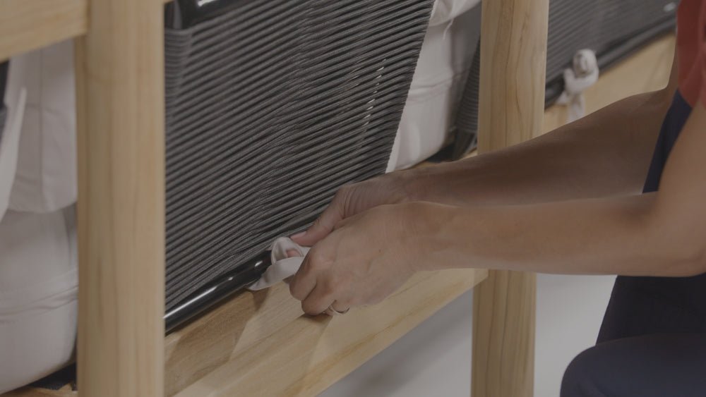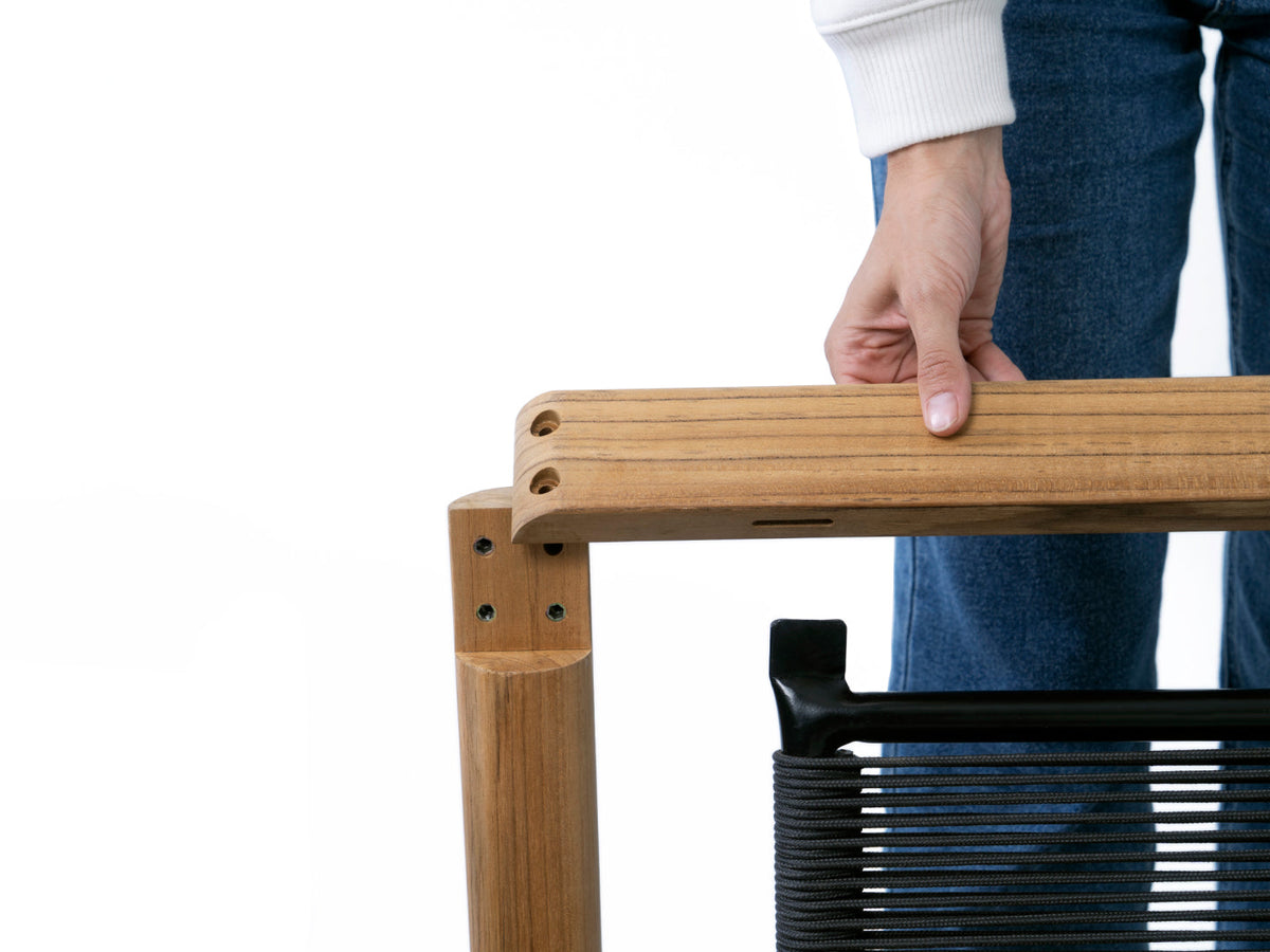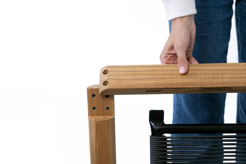 - FSC-certified solid teak wood frame, polyester rope back