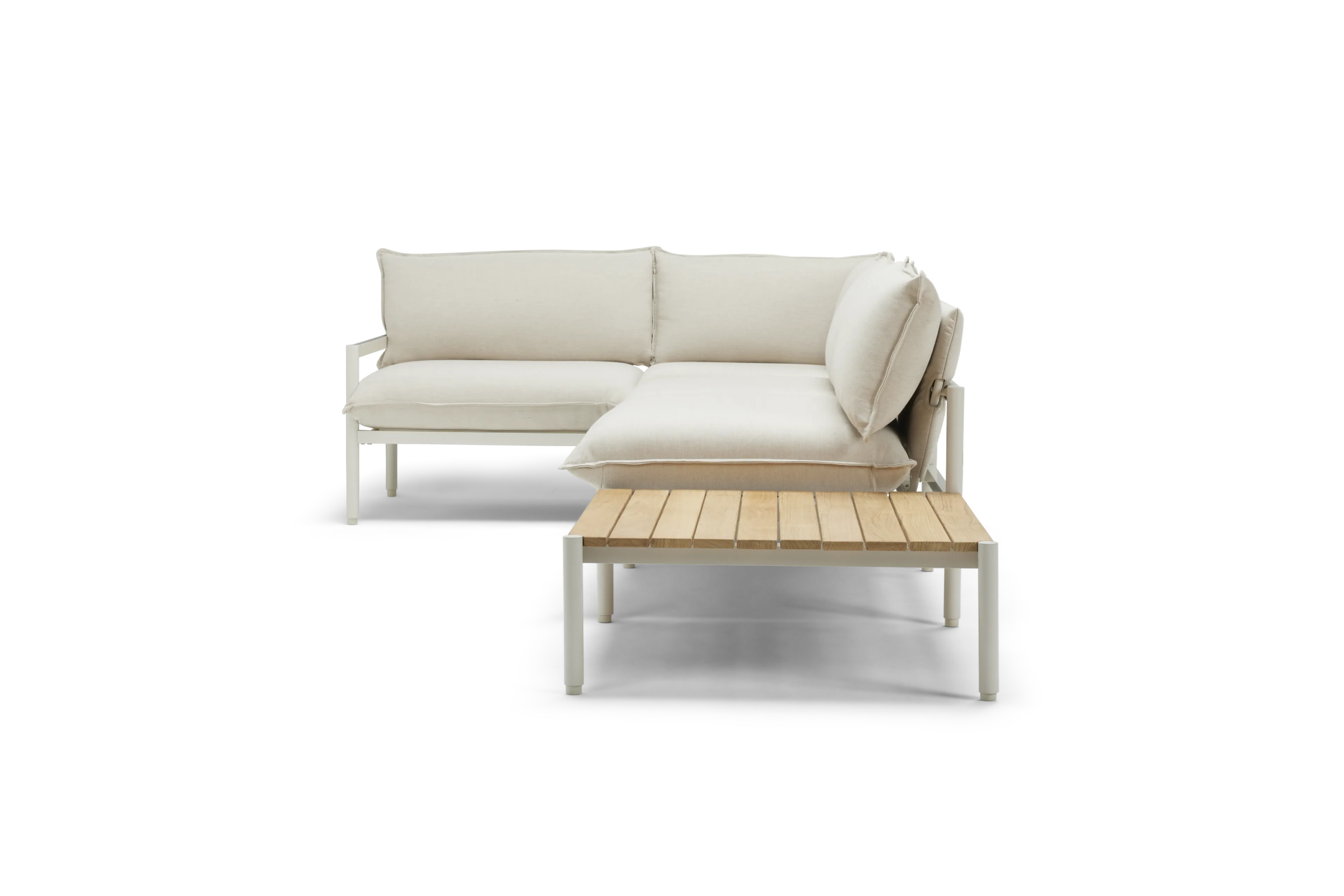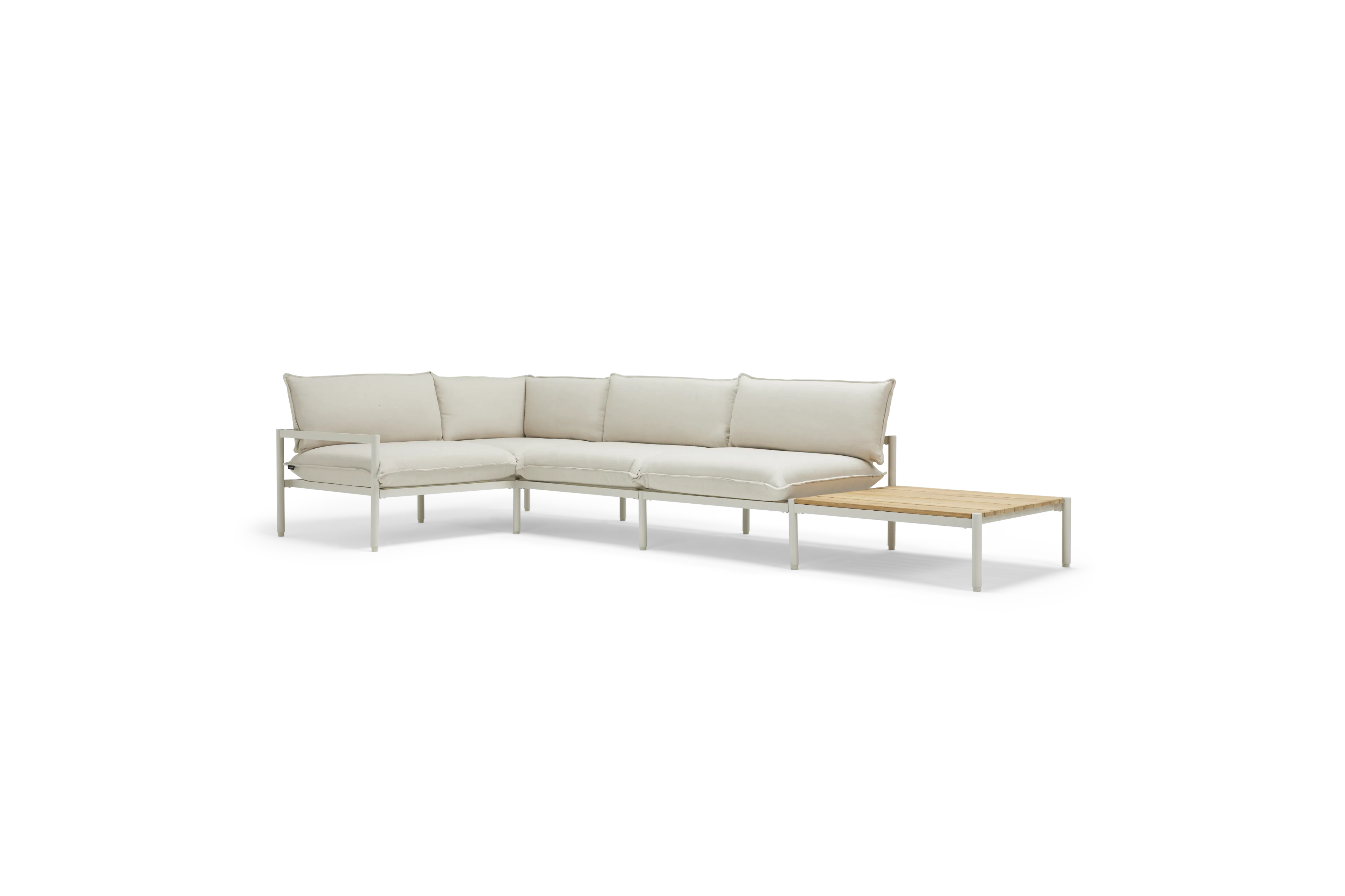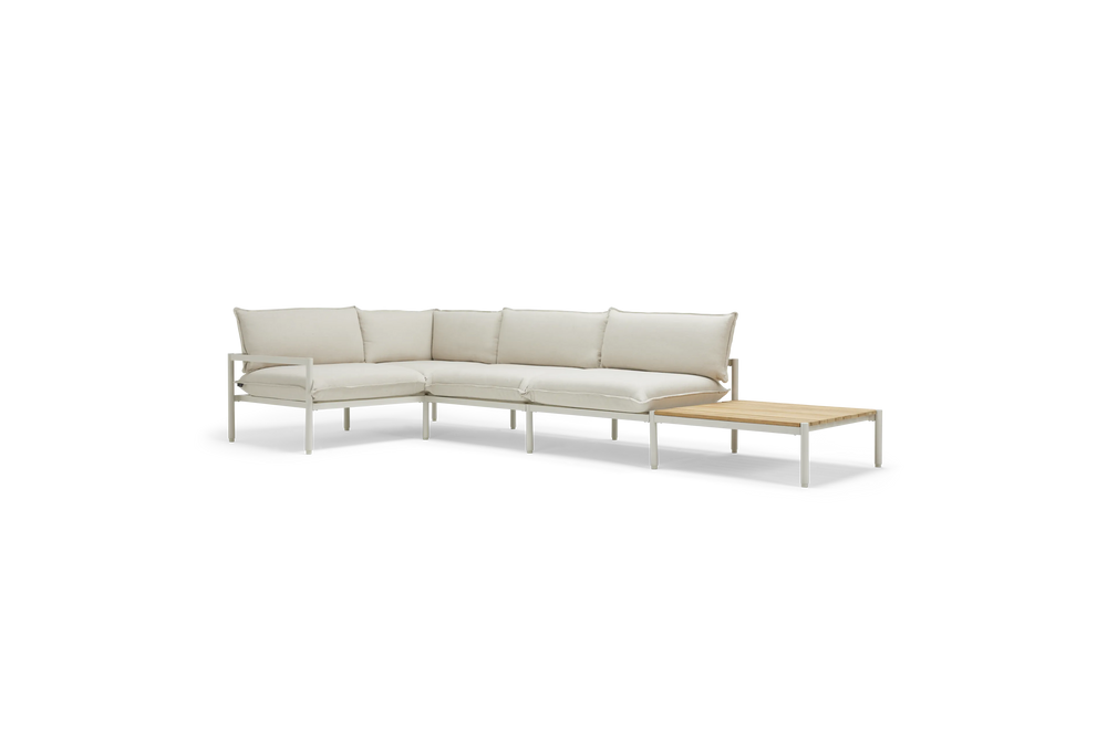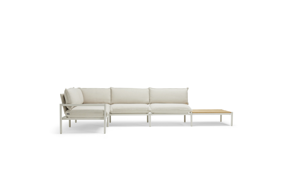 Sits well with everything Terra is our most plush outdoor sectional yet. Comfortable and easy-to-clean with recycled Sunbrella fabric and a sleek aluminum frame. Includes a modular in-line table to be placed where you need it most.