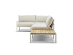 The Terra lounge collection gives you our highest level of outdoor comfort yet. Easy to clean and designed to last in all weather, it’s made with a matte-finish aluminum frame and recycled Sunbrella® fabric made exclusively for Neighbor. This combination includes a small or large In-line table that can fit between two modules or as an attached end table.