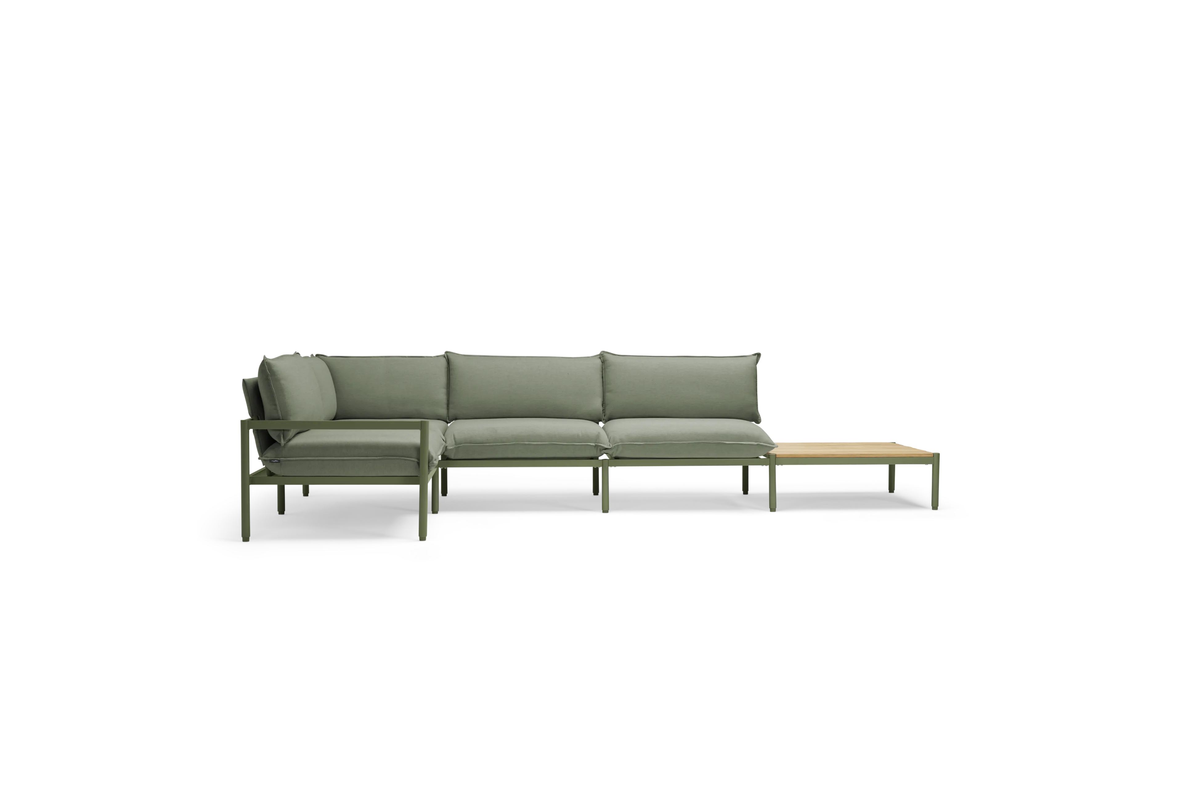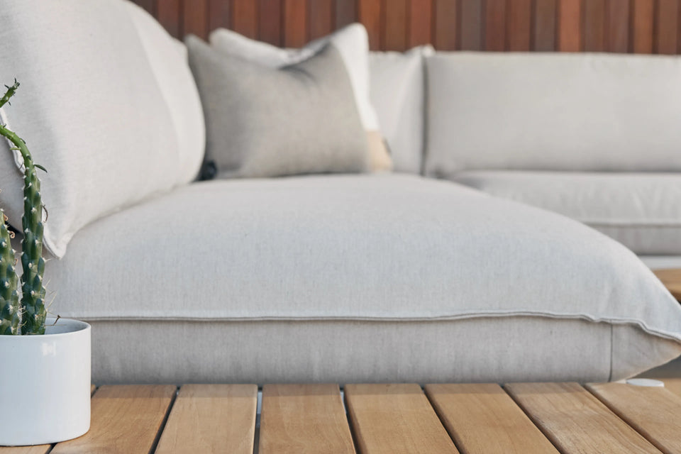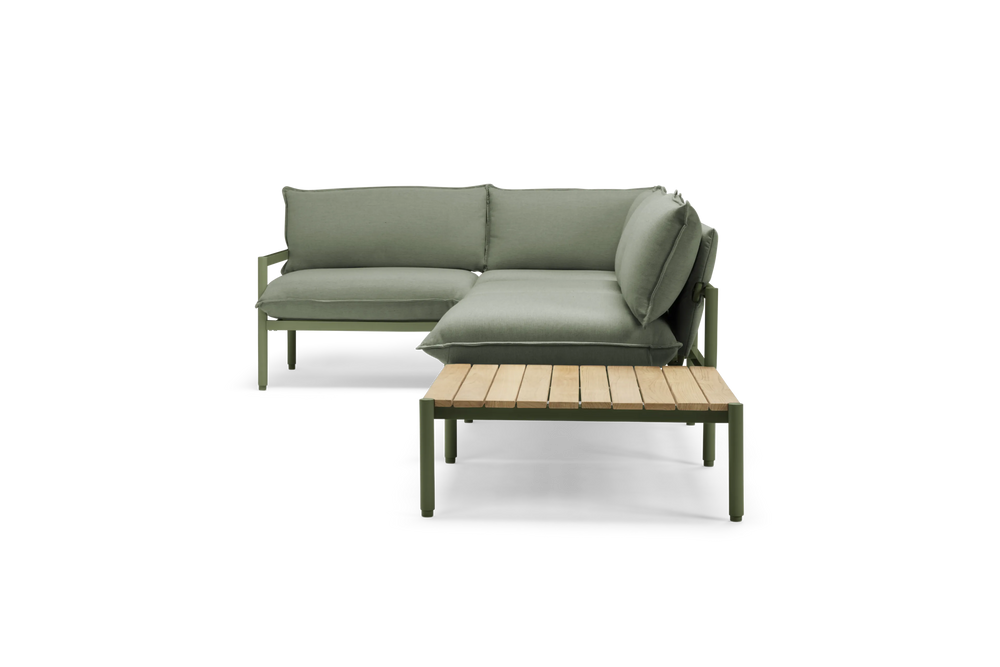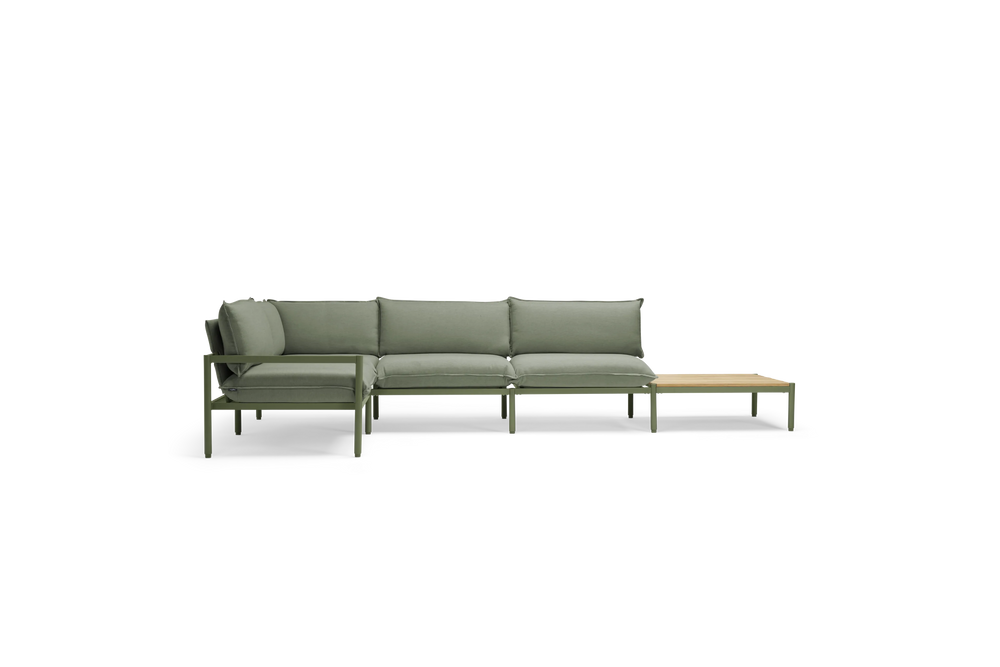 Terra is our most plush outdoor sectional yet. Comfortable and easy-to-clean with recycled Sunbrella fabric and a sleek aluminum frame. Includes a modular in-line table to be placed where you need it most.