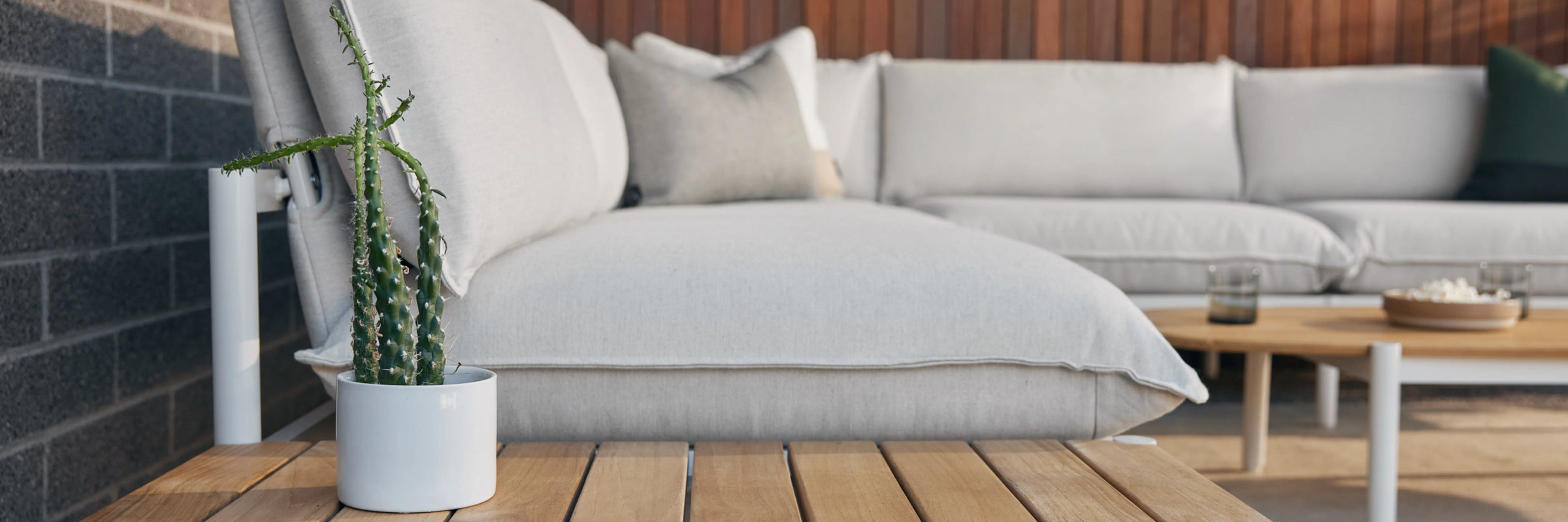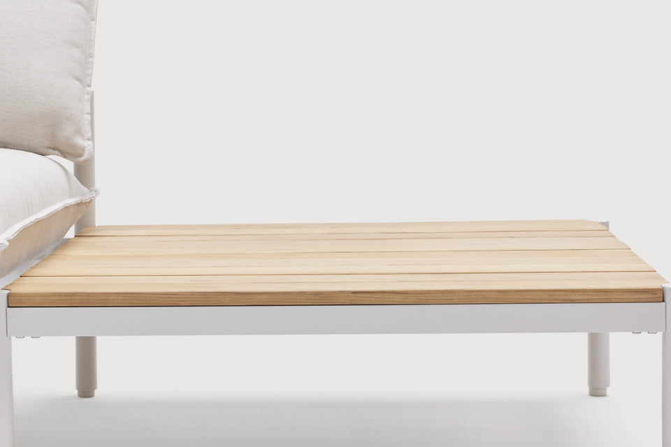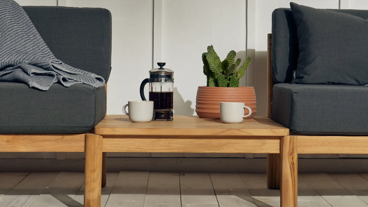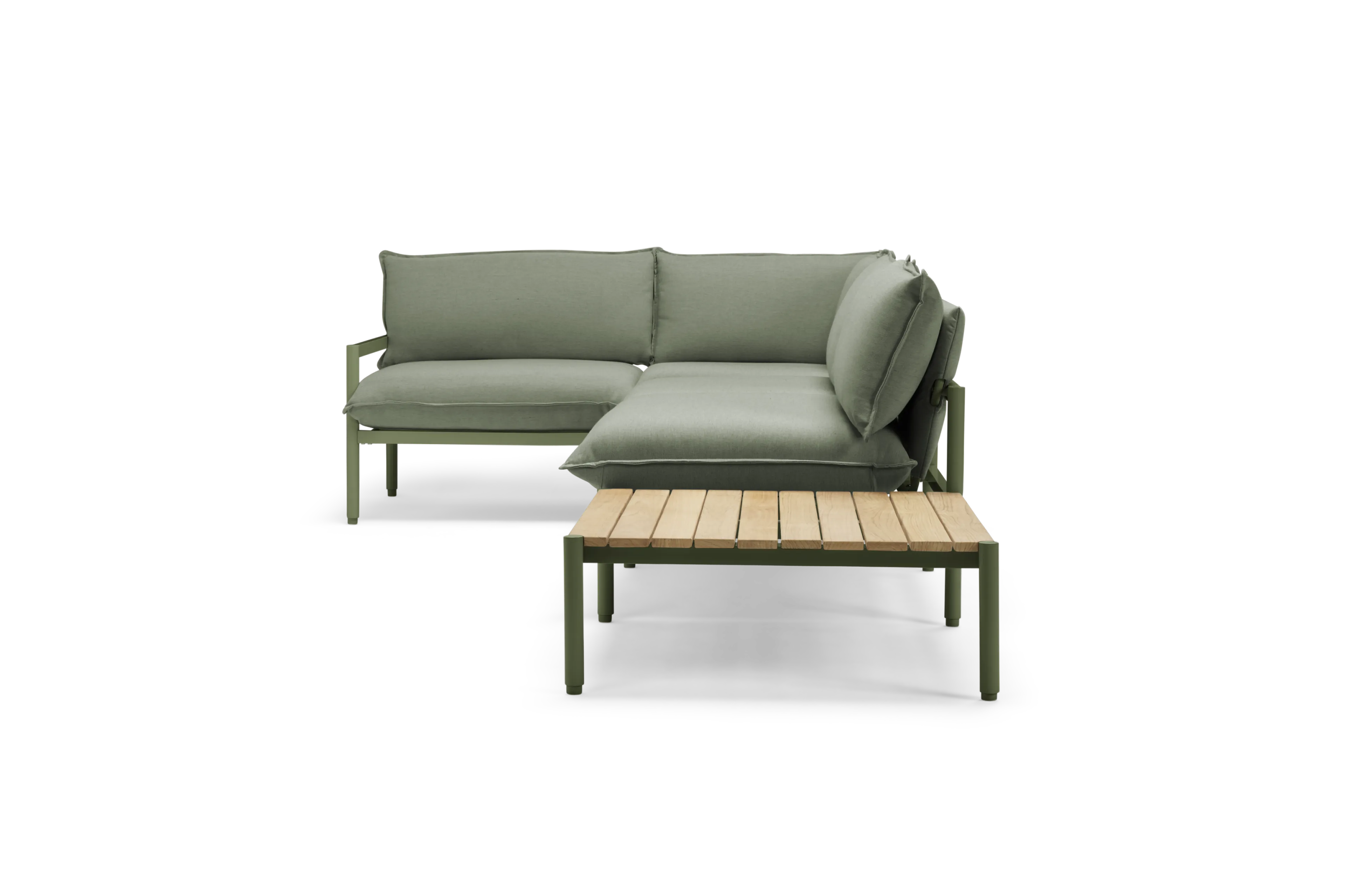 Terra is our most plush outdoor sectional yet. Comfortable and easy-to-clean with recycled Sunbrella fabric and a sleek aluminum frame. Includes a modular in-line table to be placed where you need it most.