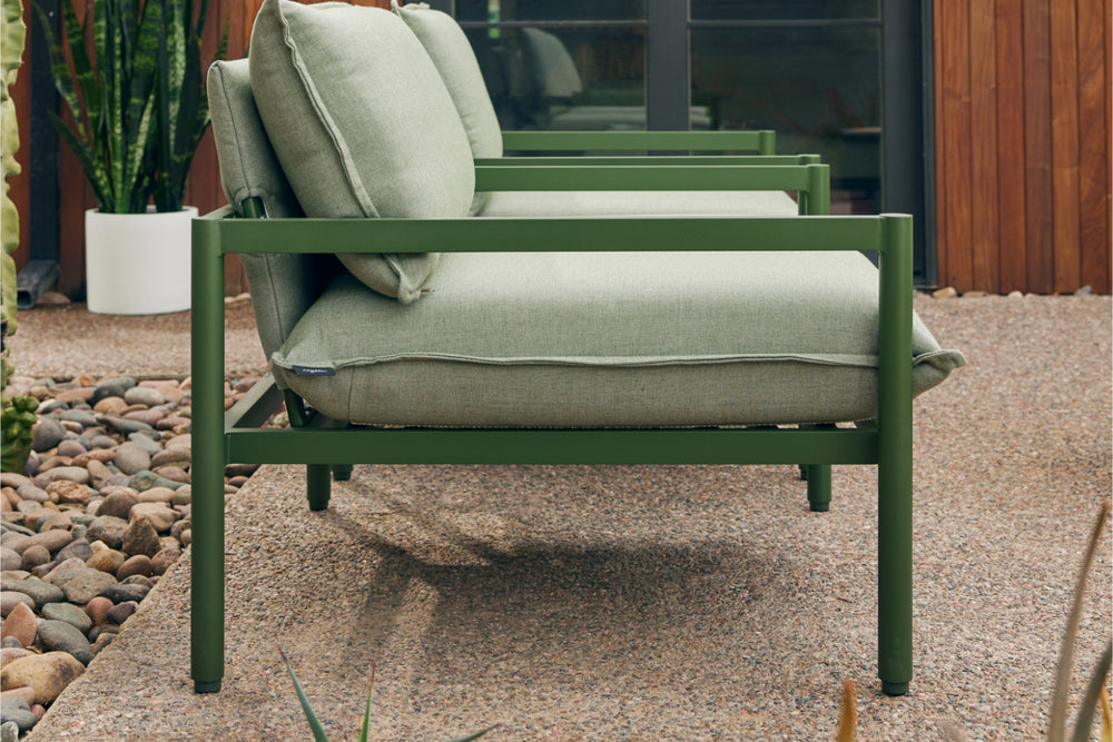 Terra is our most plush outdoor sofa yet. Addictively comfortable and durable with recycled Sunbrella fabric and a sleek aluminum frame.