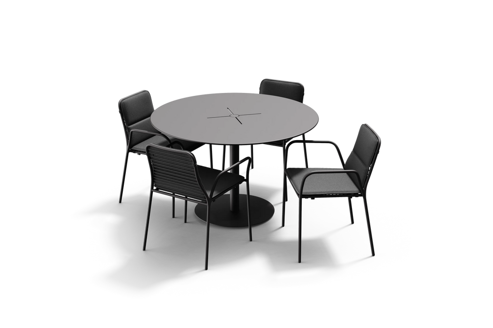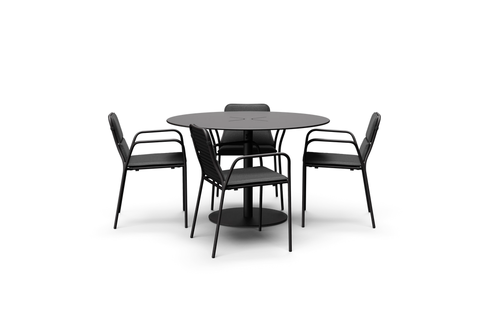 Made for good meals and good company, the XY Dining Set is versatile, functional and features a powder-coated metal that is perfect for all weather.